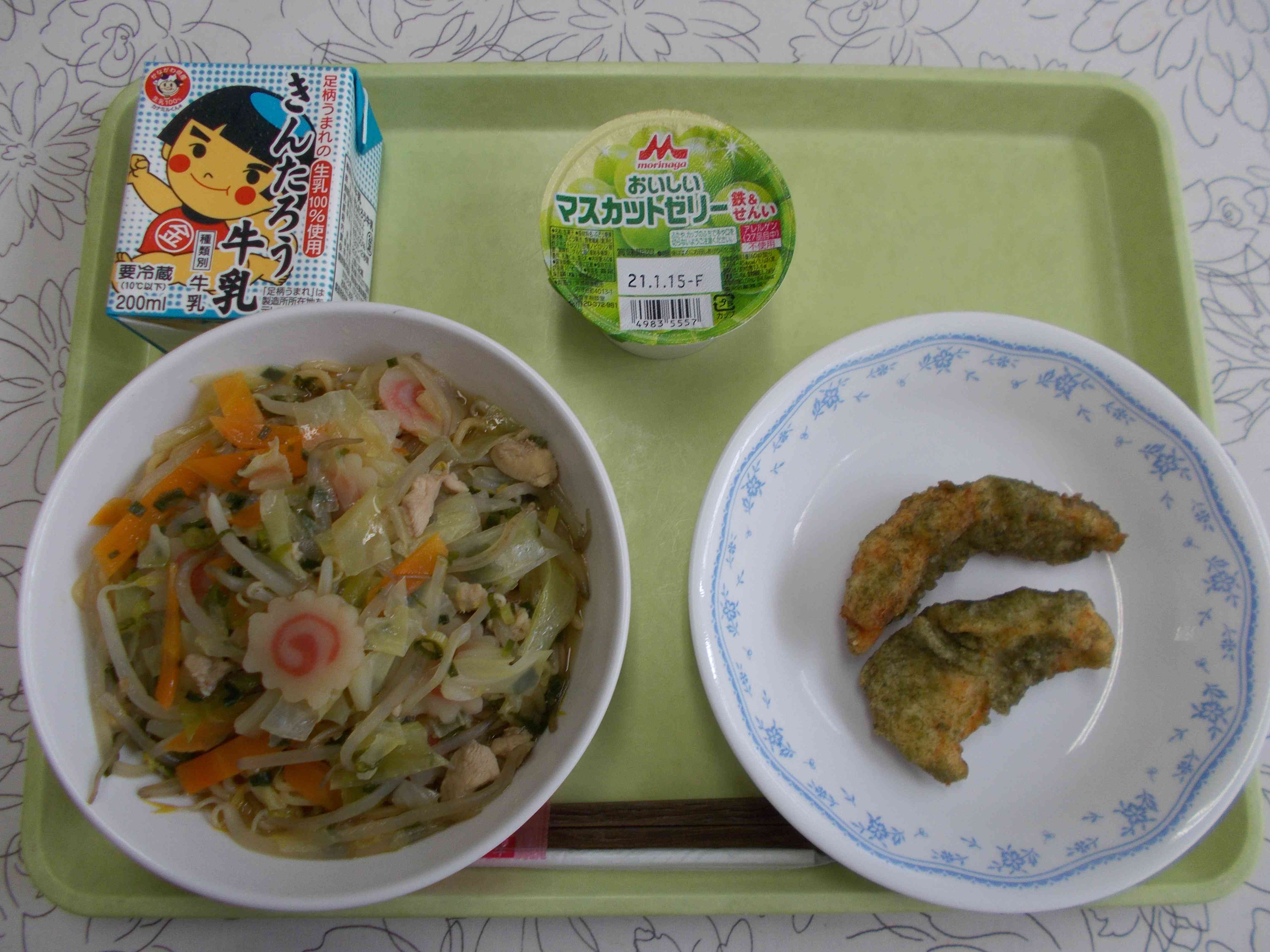 【メニュー】 しょうゆラーメン 牛乳 サバフグの磯部揚げ マスカットゼリー 【栄養教諭から】 今日は農林水産業事業を活用した献立第2弾で「サバフグ」を使用しました。「給食でサバフグ?!」と驚かれた方も多いと思います。サバフグ、正式名称シロサバフグは、毒のないフグなので安全に食べられます。白身でやわらかくおいしい!との情報でしたので、私も初挑戦してみました。今回は香りよく磯部揚げにしました。子どもたちの反応が楽しみです。 【感想】 サバフグの磯部揚げ 魚がほくほくしていた。 カリカリでおいしい。 衣の味が良い。 ☆完食しました!【添付ファイル】