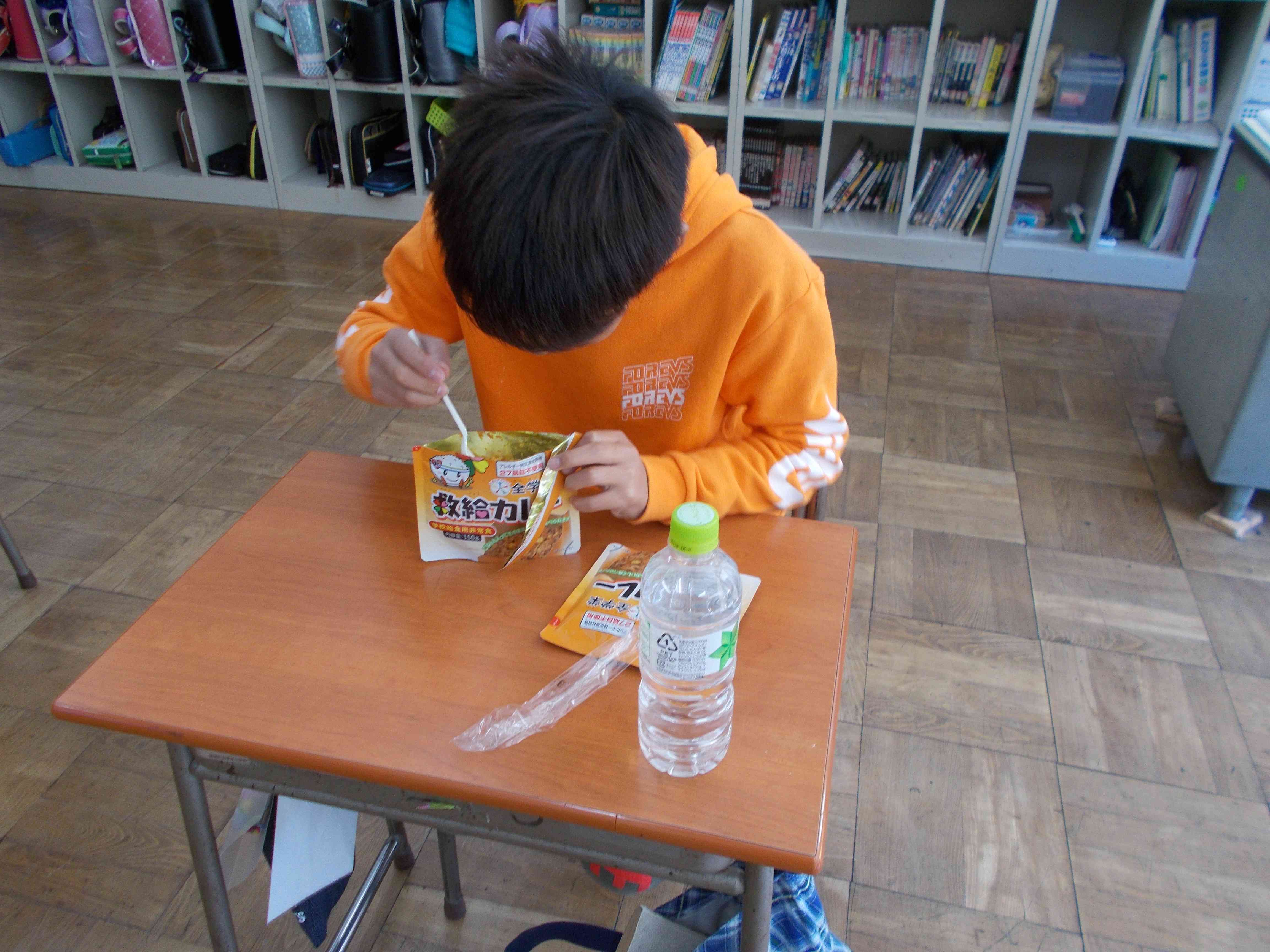 今日は防災給食です。 台風や大雨などの大きな災害があった時には、電気やガス、水道などが止まってしまうこともあります。そんな時に、救助を待つ間に今日のような非常食を食べて命をつなぎます。 非常食は、長い期間とっておける食事の事です。今日のカレーは、もしもの時に備えて、3年前に湯本小のみんなのために準備した非常食です。非常食なのに、食べちゃって大丈夫なの?と、思った人もいるかと思いますが、非常食にも消費期限があります。食べられなくなる前に、食べて、また新しい非常食を保存しておくことが大切です。 では、ここで、クイズです。 今から4年前熊本で起きた大きな地震の時、ある避難所での食事です。避難所で出された最初の食事は次のうちどれでしょう? 1朝昼晩毎回、お弁当が出された。 2朝昼晩と1個ずつ食べられる用に、おにぎりが3個配られた。 3一日に1個だけおにぎりが配られた。 正解は3です。初めは、一日に1個だけおにぎりが配られました。その後、一日3個のおにぎりや炊き出し、そして1食はお弁当と改善されていったそうです。 災害が起こってから、助ける体制が整うまでは、3日はかかると言われています。避難所にある食事だけでは、足りなくなることもあります。 みなさんのお家それぞれでも、家族の人数の3日分の非常食を用意しておくことが大切です。【添付ファイル】