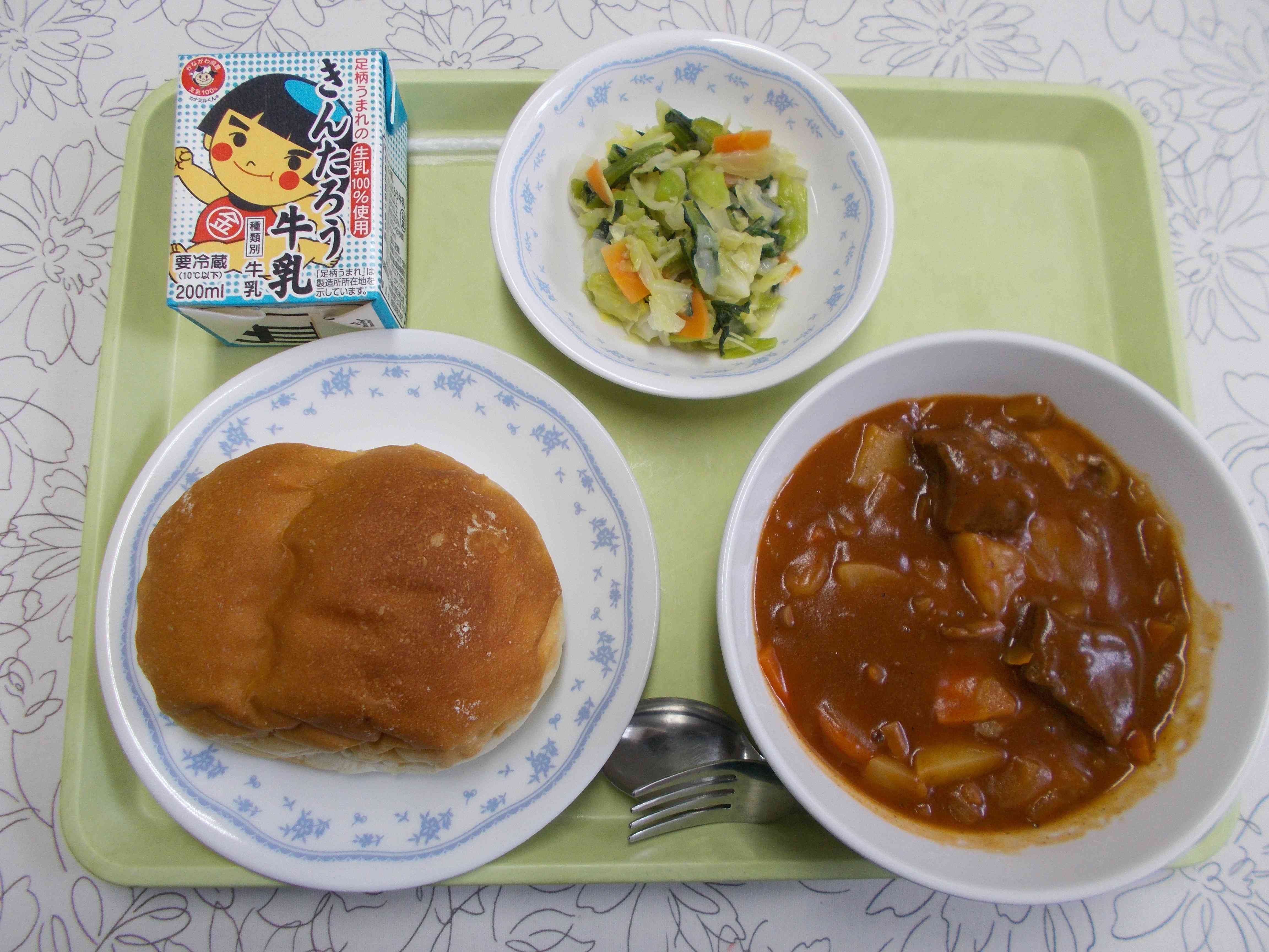【メニュー】 ソフトフランス 牛乳 ビーフシチュー キャベツと青菜の炒め物 【栄養教諭から】 今日は、足柄牛献立第2弾です。はこねランチとして、4校でビーフシチューにしました。前回と同様に本校では足柄牛が、他の3校では相州牛が無償で提供されました。給食時に子どもたちは、生産者さんからのメッセージ等が入ったDVDを観ました。生き物の命をいただくということ、また、それに携わる方々がいるということ。今日はいつも以上に気持ちを込めて「いただきます」「ごちそうさま」ができると良いなと思います。【添付ファイル】