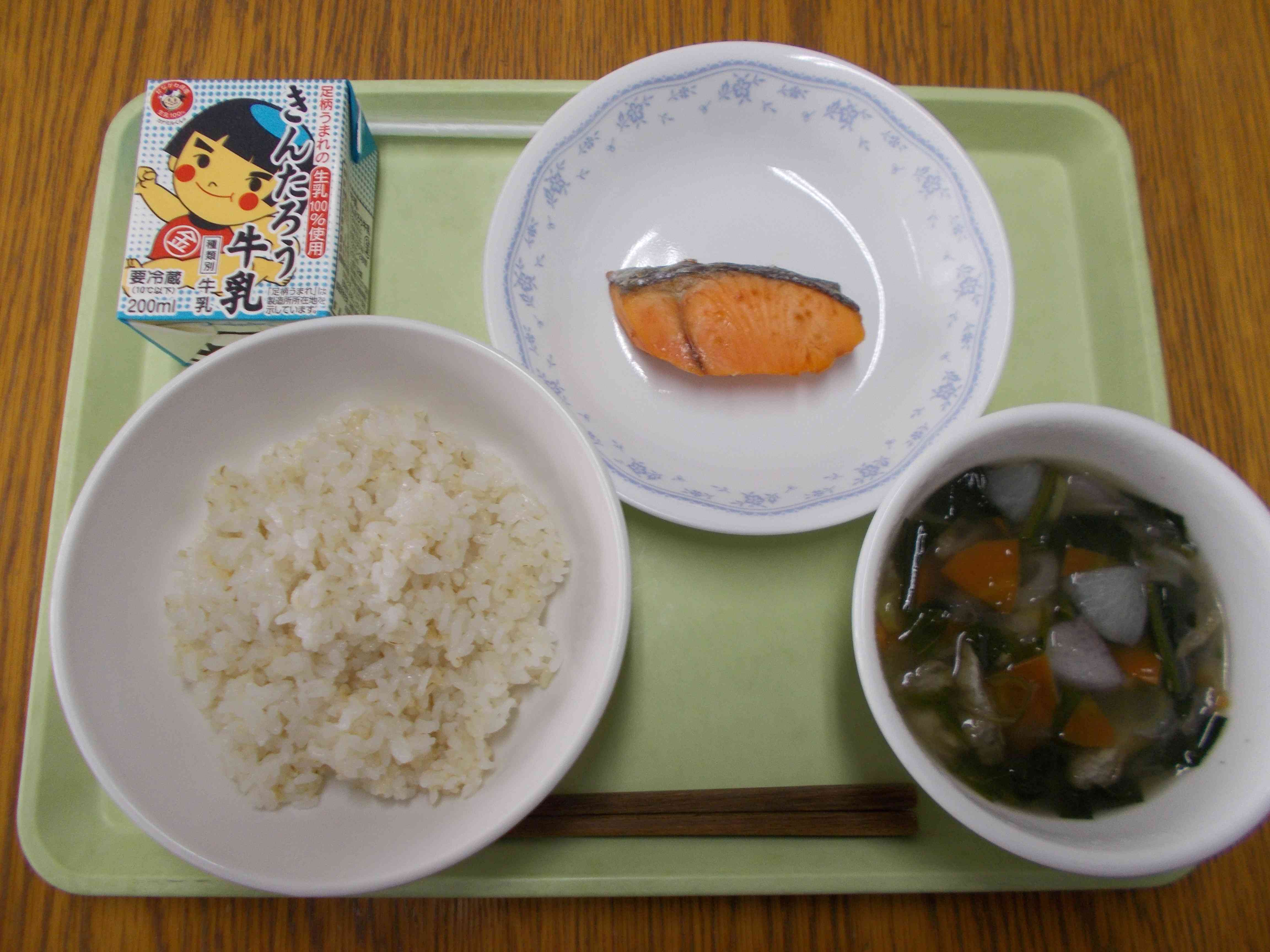 【メニュー】 麦ごはん 牛乳 冬野菜汁 鮭の塩焼き 【栄養教諭から】 1月24日~30日は全国学校給食週間です。湯本小では、本日から給食週間のイベントや献立を出しています。今朝は、給食放送委員による動画でのテレビ朝会を行いました。そして、今日の献立は、一番初めの給食であった「塩むすび、鮭の塩焼き、青菜の漬物」に合わせて鮭の塩焼きです。そして、体が温まるよう冬野菜をたくさん使ったお汁を合わせました。来週はリクエスト献立が続きます。今年の一位は、何とビックリ...!来週をお楽しみに。【添付ファイル】