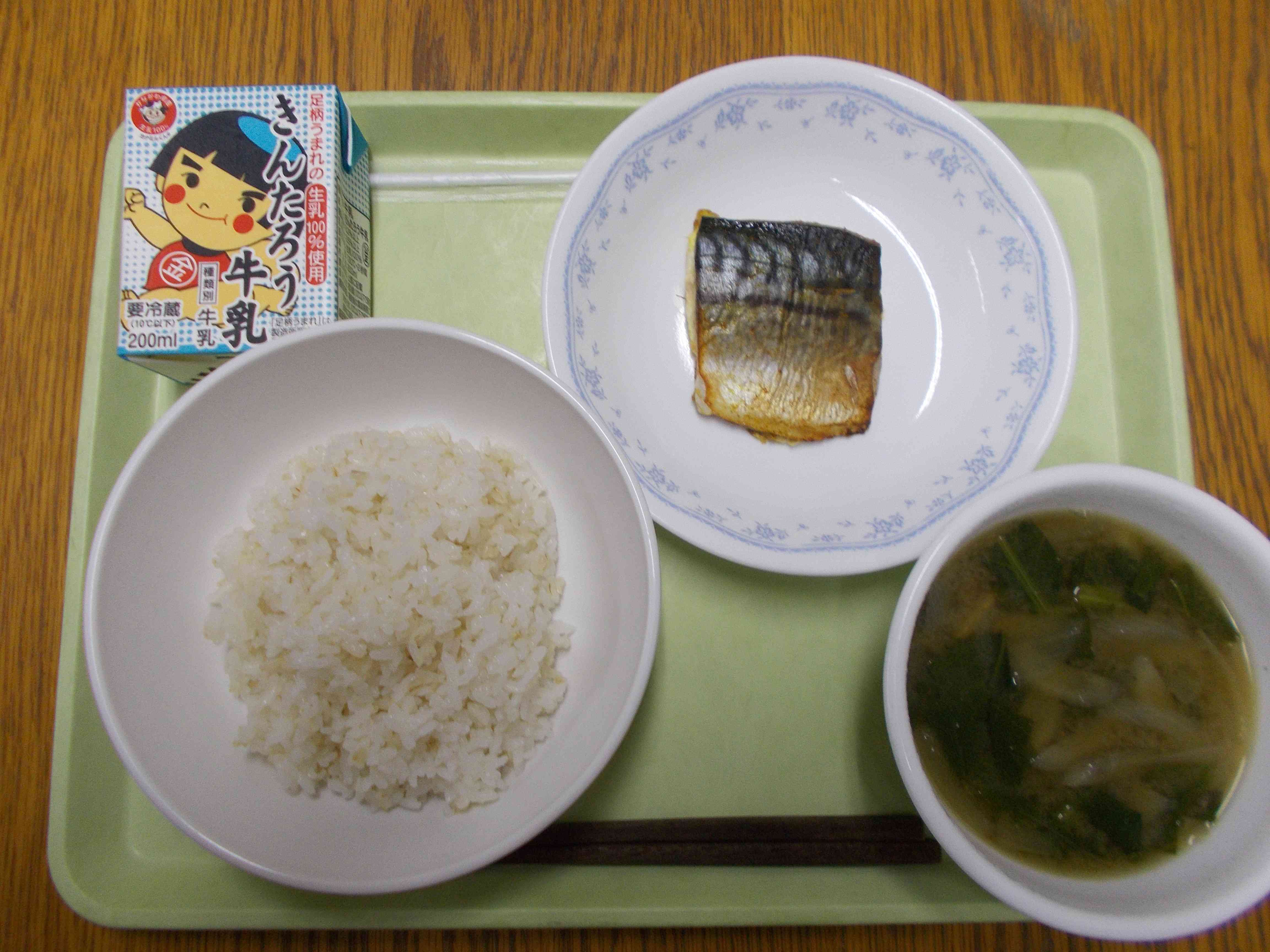 【メニュー】 麦ごはん 牛乳 具だくさんみそ汁 さばのカレーじょうゆ焼 【栄養教諭から】 本校はお魚好きの子が多く、特にサバは人気です。魚を嫌がらずに食べるのには理由があります。それは骨がほとんどないからです。切身なのでもちろんもともと大きな骨はありませんが、魚屋さんで丁寧に処理してくださるので、子どもたちは安心して食べられます。本当は骨があっても自分で取りながら食べられるとよいので、年に数回は干物や筒切りの魚を出すようにしています。【添付ファイル】