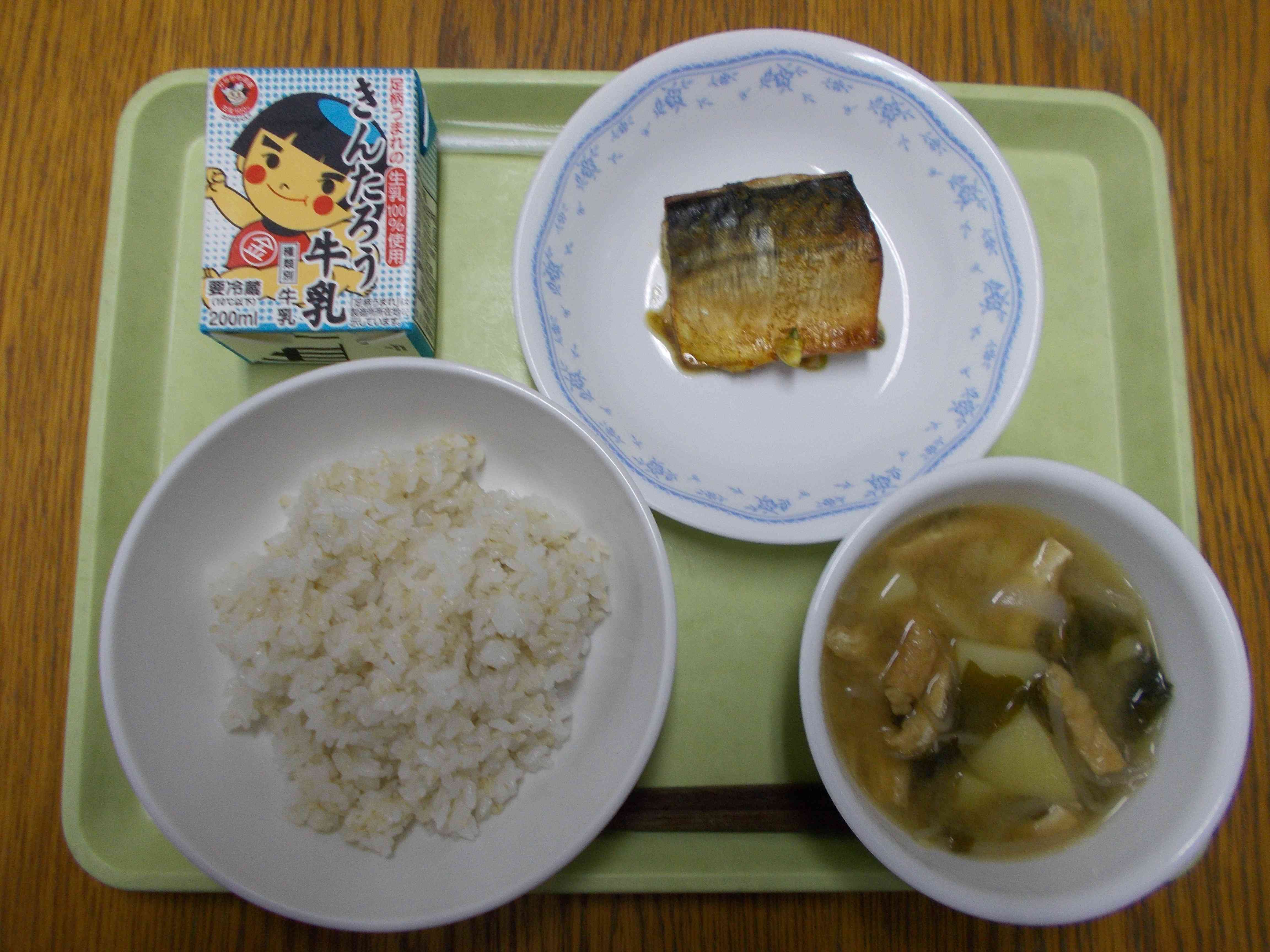 【メニュー】 麦ごはん 牛乳 新じゃがのみそ汁 さばのカレー醤油焼き 【栄養教諭から】 今日は新じゃがを使いました。やわらかく、香りも良いのが特徴です。新じゃがは水分が多くみずみずしいので、油で揚げたり、焼いたりして水分をとばす調理法をするとよりおいしく食べられます。今が旬ですので、色々な料理で食べたいですね。