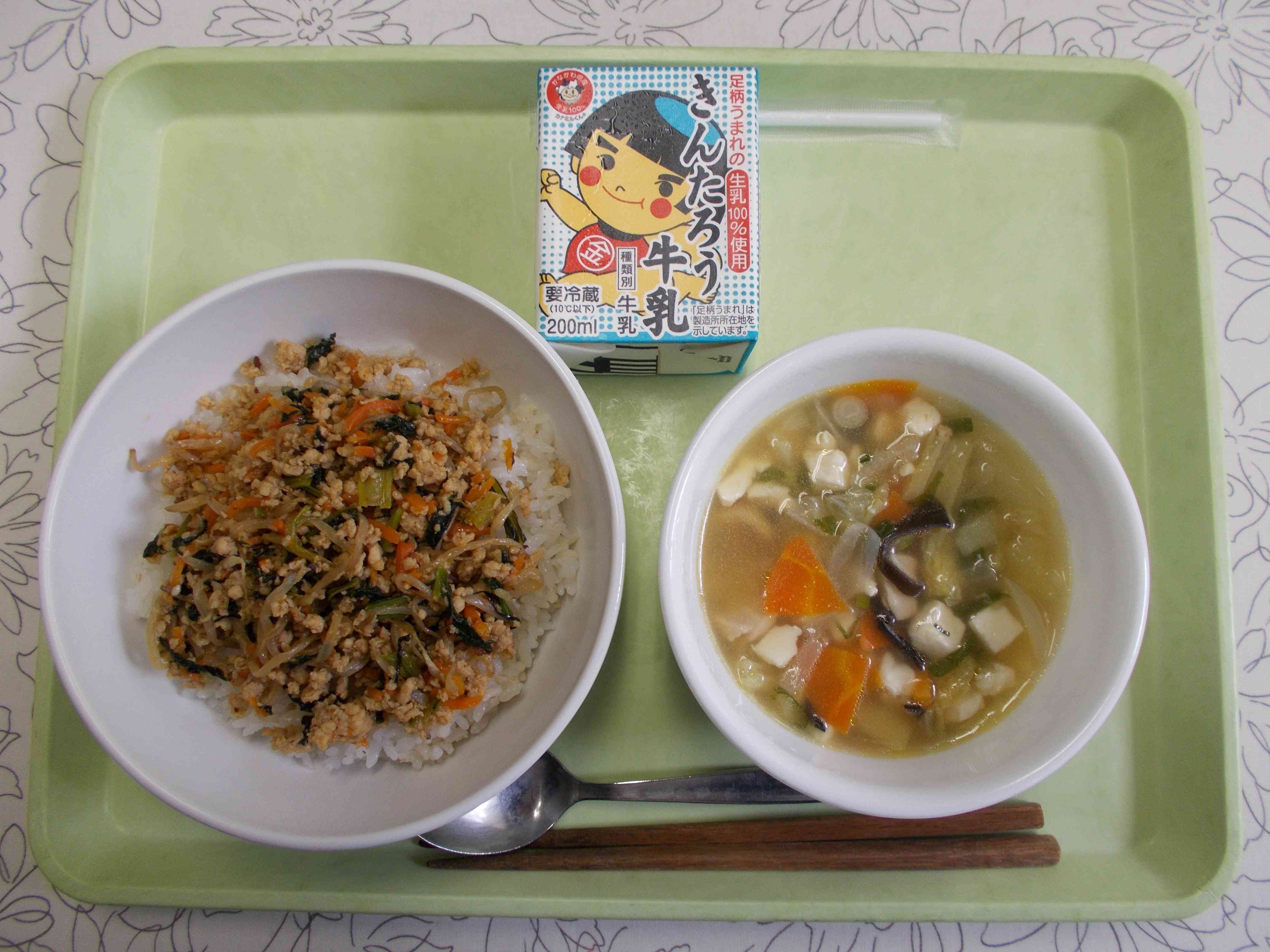 【メニュー】 ビビンパ 牛乳 白菜と豆腐のスープ 【栄養教諭から】 今日はビビンパです。料理名については、ビビンパであったり、ビビンバであったり。調べたところどちらでもよいそうです。韓国では「ビビンパプ」ビビンは混ぜる、パプはご飯の意味で最後の「プ」は発音しないので「ビビンパッ」と発音するとのことです。今日は本場の表記にしてみました。お肉たっぷりのビビンパです。しっかり食べて1週間のスタートを元気に始めてほしいです。【添付ファイル】