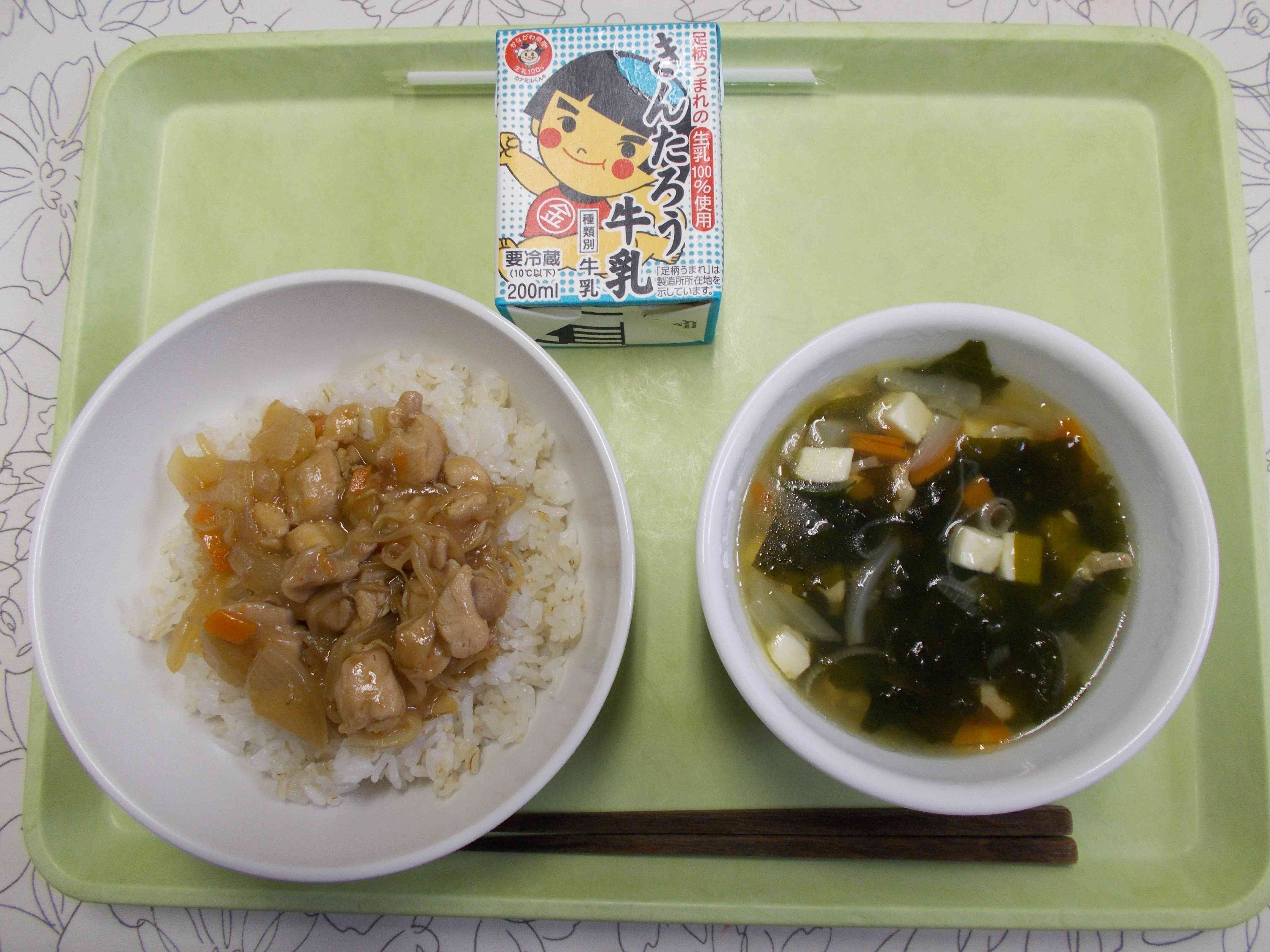 【メニュー】 鶏の梅照り焼き丼 牛乳 わかめスープ 【栄養教諭から】 今日は、さっぱりと梅風味の照り焼き丼です。梅干しは江戸時代頃から食べられていたそうです。神奈川でもおとなりの小田原市で梅干し作りが盛んにおこなわれていますね。今日はその小田原の曽我産の梅干しを使用しました。梅干しは細かくたたき、味がまろやかになるように、はちみつと三温糖で甘味を加えました。梅雨の時期にピッタリの丼物です。