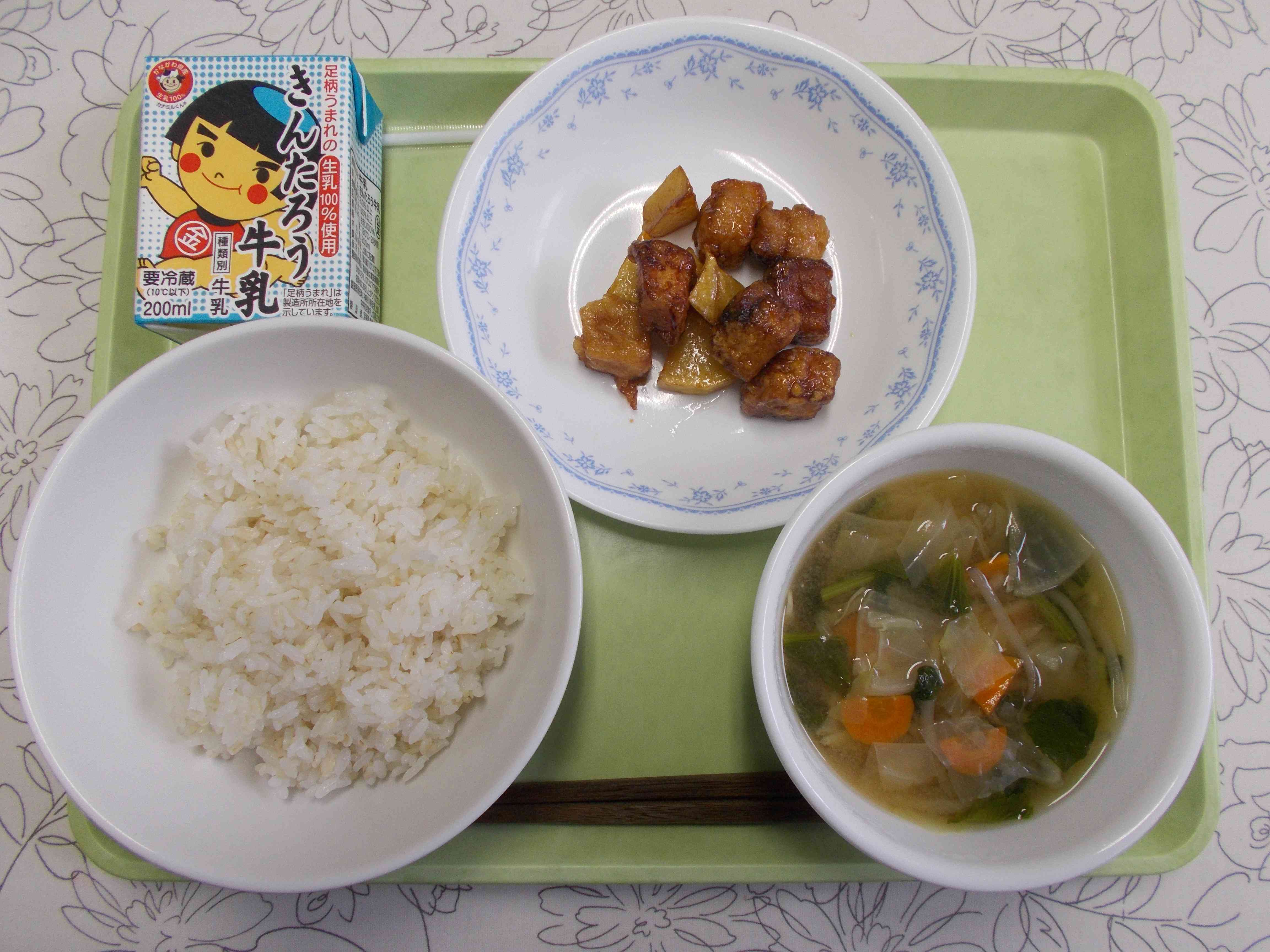 【今日の献立】 麦ごはん 牛乳 野菜の味噌汁 メカジキのかりんとう風 【栄養教諭から】 今日から2学期の給食がスタートしました。新型コロナウィルス感染症対策として、手洗いの消毒、黙食を徹底しての給食です。おしゃべりをしなくても、給食の時間を楽しんでもらえるよう、給食時間中は放送で音楽を流します。これまでよりも、徹底した対策が必要となりますが、子どもたちは給食を楽しみにしていたので、安心して食べられるよう学校全体で取り組んでいきます。 今日は、子どもたちも大好きなメカジキのかりんとう風です。甘辛い味でご飯もモリモリ進むと思います。【添付ファイル】