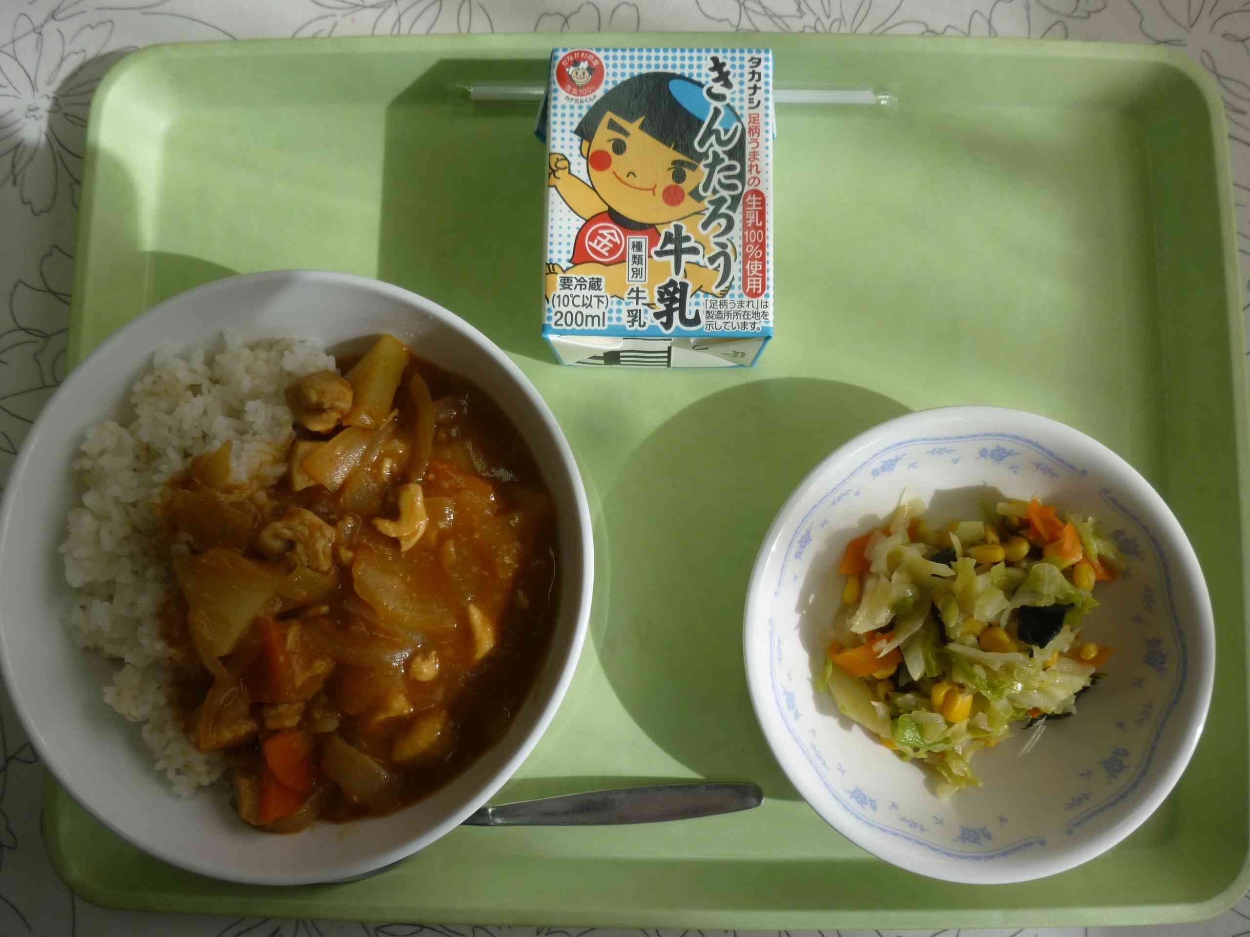 【今日の献立】 チキンカレー 牛乳 カラフルソテー 【栄養教諭から】 みなさんは「カレーの日」というのをご存知ですか。 1982年に学校給食35周年の記念で、全国の学校栄養士の方々が「1月22日にカレーを出そう!」と呼びかけ、その日は全国の小中学校でカレーが出されたそうです。それにちなんで、1月22日はカレーの日となりました。湯本小のカレーも、りんごソースやチャツネなど、様々なものが入ったこだわりのカレーです。今日は大きめの鶏肉が入ったチキンカレーです。【添付ファイル】
