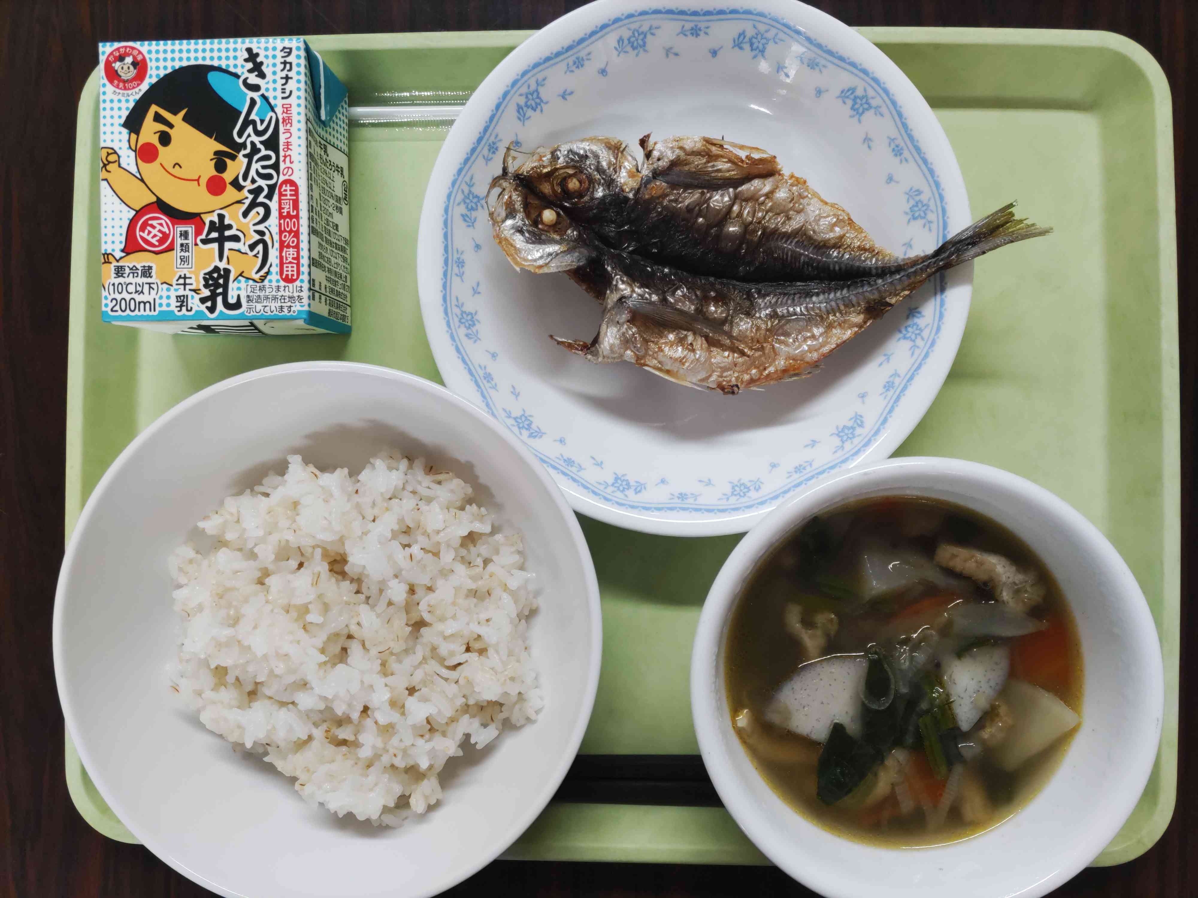 【今日の献立】 麦ごはん 牛乳 冬野菜汁 鯵(あじ)のカリカリ揚げ 【栄養教諭から】 今日は好きな給食ランキングおかず1位の鯵(あじ)のカリカリ揚げです。昨年は、さばのみそ煮が1位でした。2年連続魚メニューがランクインし、お魚好きが増えたのかなと感じました。