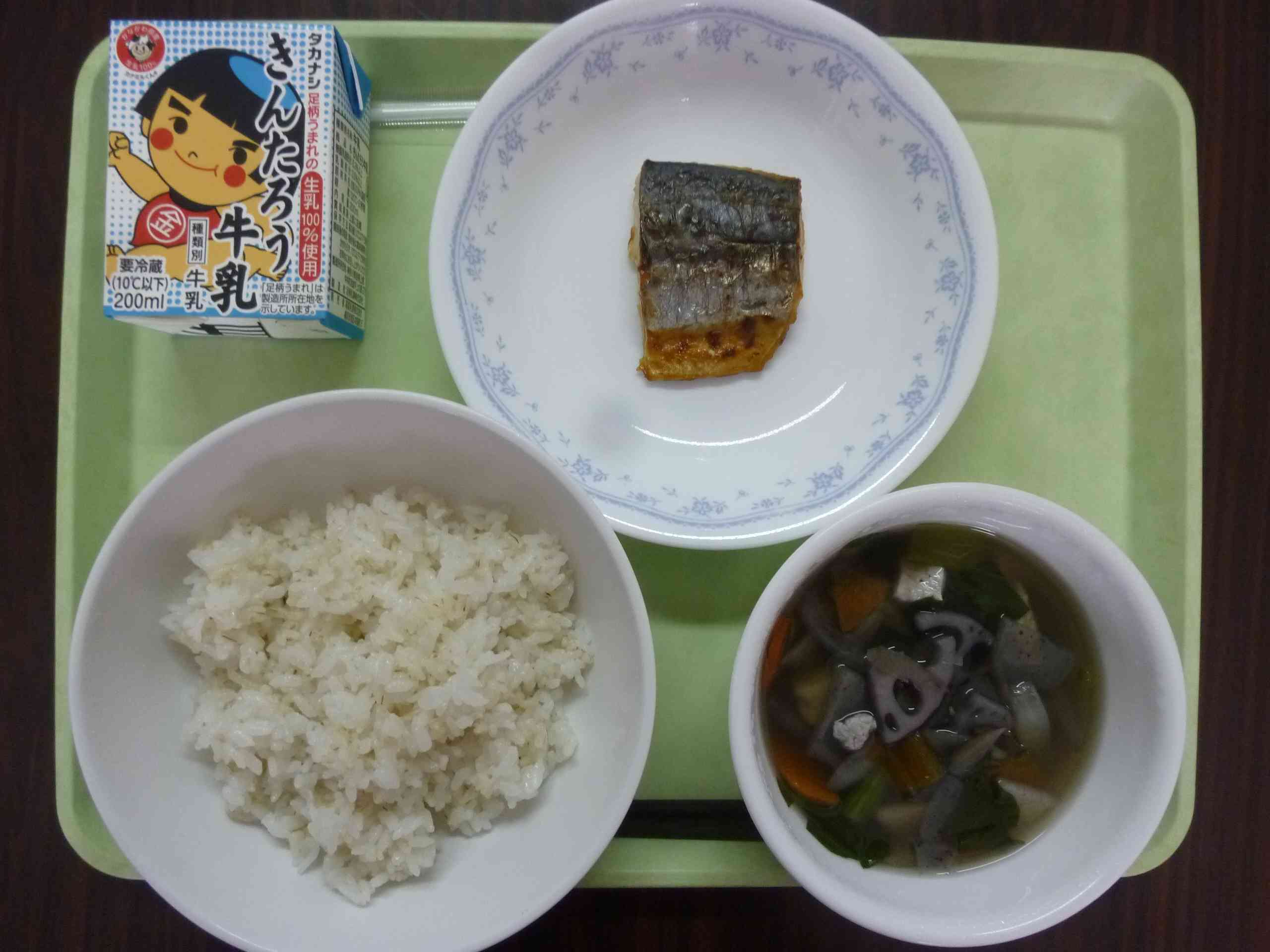 【今日の献立】 麦ごはん 牛乳 根菜汁 さわらの西京焼き 【栄養教諭から】 みそは発酵の日数によって色が変化します。普通は2ヶ月~1年ほど熟成させ、長く熟成させるほど色の濃いみそになります。西京焼きに使う西京みそはきれいなクリーム色です。熟成期間は5日~20日ほどだそうです。今日は白みそに甘味を加えて西京焼きにしました。