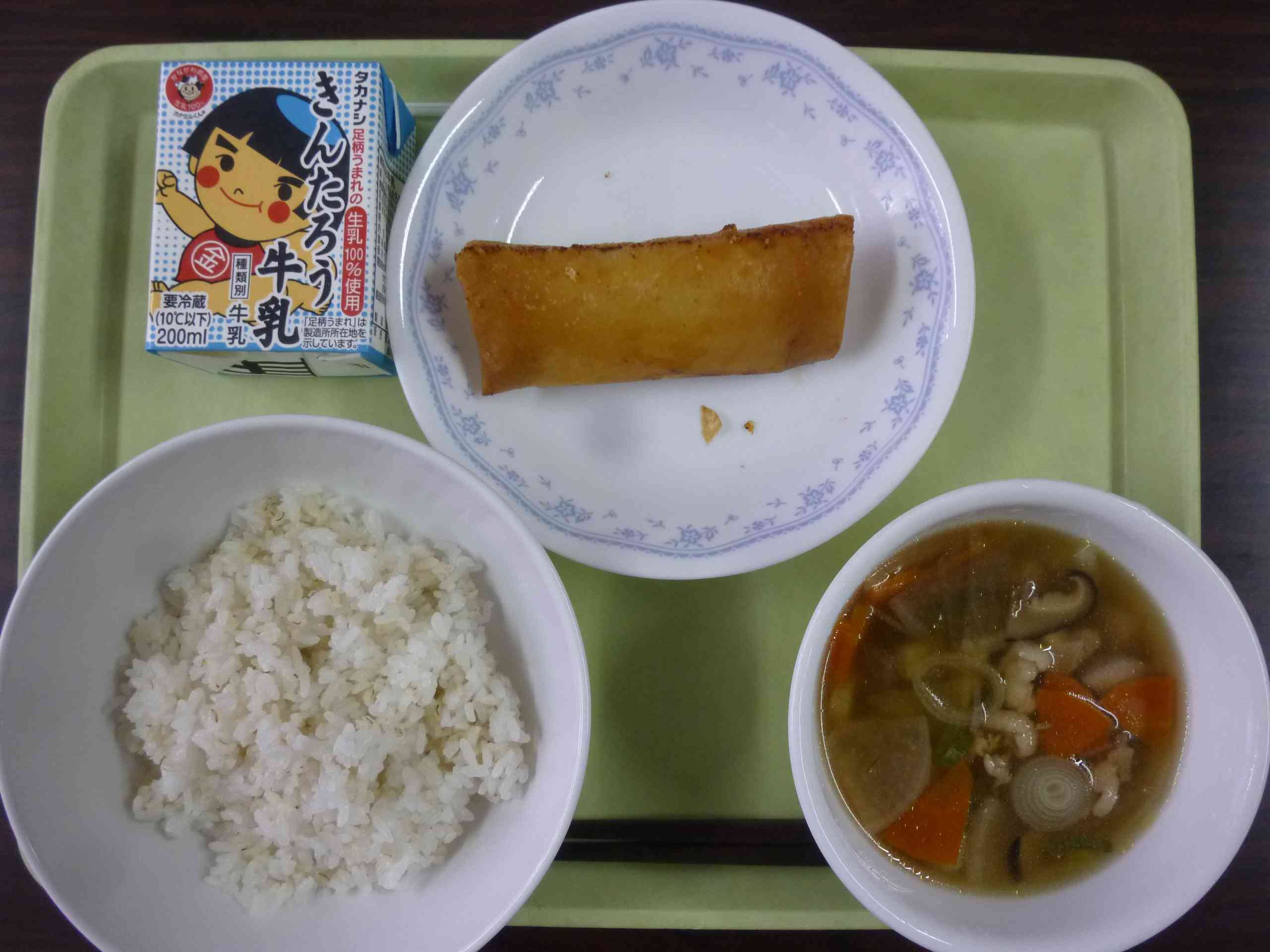 【今日の献立】 麦ごはん 牛乳 のっぺい汁 メカジキのまきまき揚げ 【栄養教諭から】 今日はメカジキのまきまき揚げという新メニューです。これは仙石原小学校の栄養士さんから教わったメニューです。メカジキとチーズを春巻きの皮で包んで揚げます。メカジキは三崎港で水揚げされた物を使用しました。他校ではおいしいと評判のこのメニュー。湯本の子がどんな反応をするのか楽しみです。