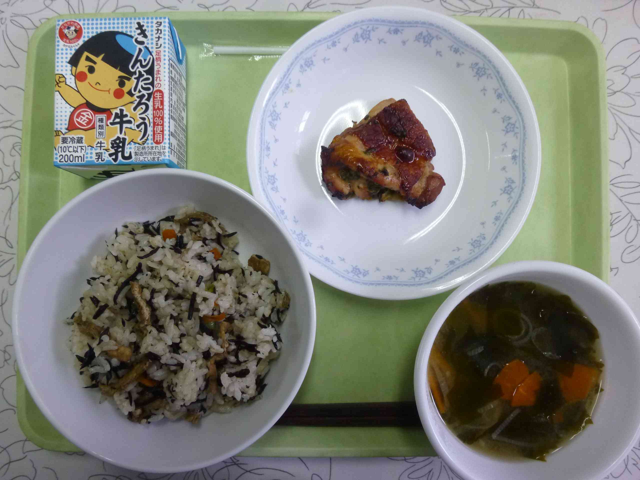 【今日の献立】 ひじきご飯 牛乳 みそ汁 鶏の香味焼き 【栄養教諭から】 箱根は山を越えると静岡県なので、静岡県産の野菜が多く届きます。箱根連山の西南、標高50メートル以上で栽培される野菜は「箱根西麓三島野菜」というブランド野菜になっています。県を越えていますが箱根に一番近い所の野菜です。地場の物が少ない箱根にとって同じ土地で育った物を提供できることはありがたいことだなと思っています。今日は葉ねぎが箱根西麓産です。【添付ファイル】