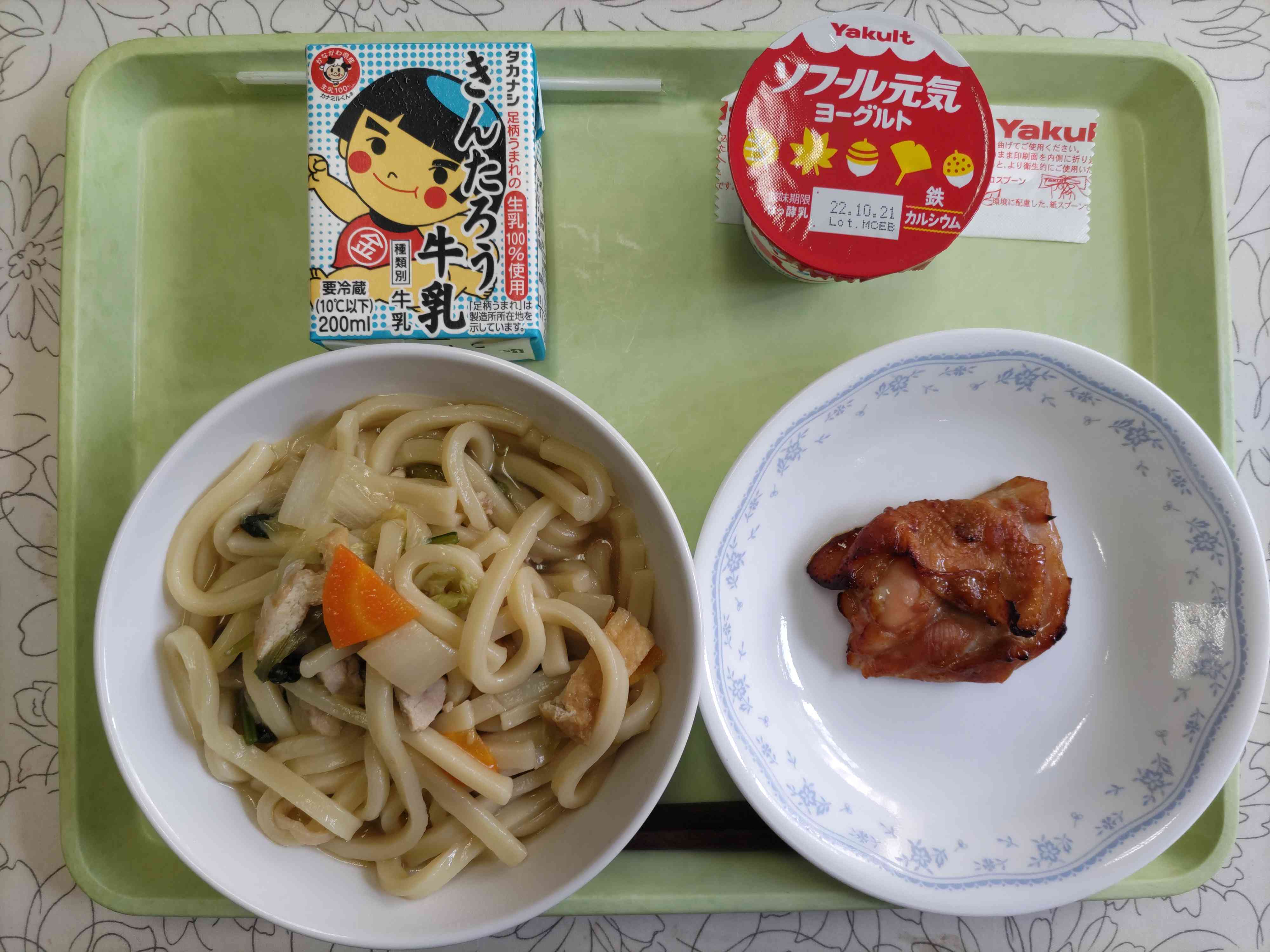 【今日の献立】 煮込みうどん 牛乳 鶏肉のレモン醤油焼き 元気ヨーグルト 【栄養教諭から】 今日は煮込みうどんです。少し涼しくなってきたので、ちょうどよいかと思っていたら、今日は暑くなりましたね。具をたっぷり入れたうどん、子どもたちも大好きです。2学期になって麺と汁を別配缶していますが、今回は煮込みなので一緒です。味のしみ具合が違います。今後の配缶の悩みどころです。