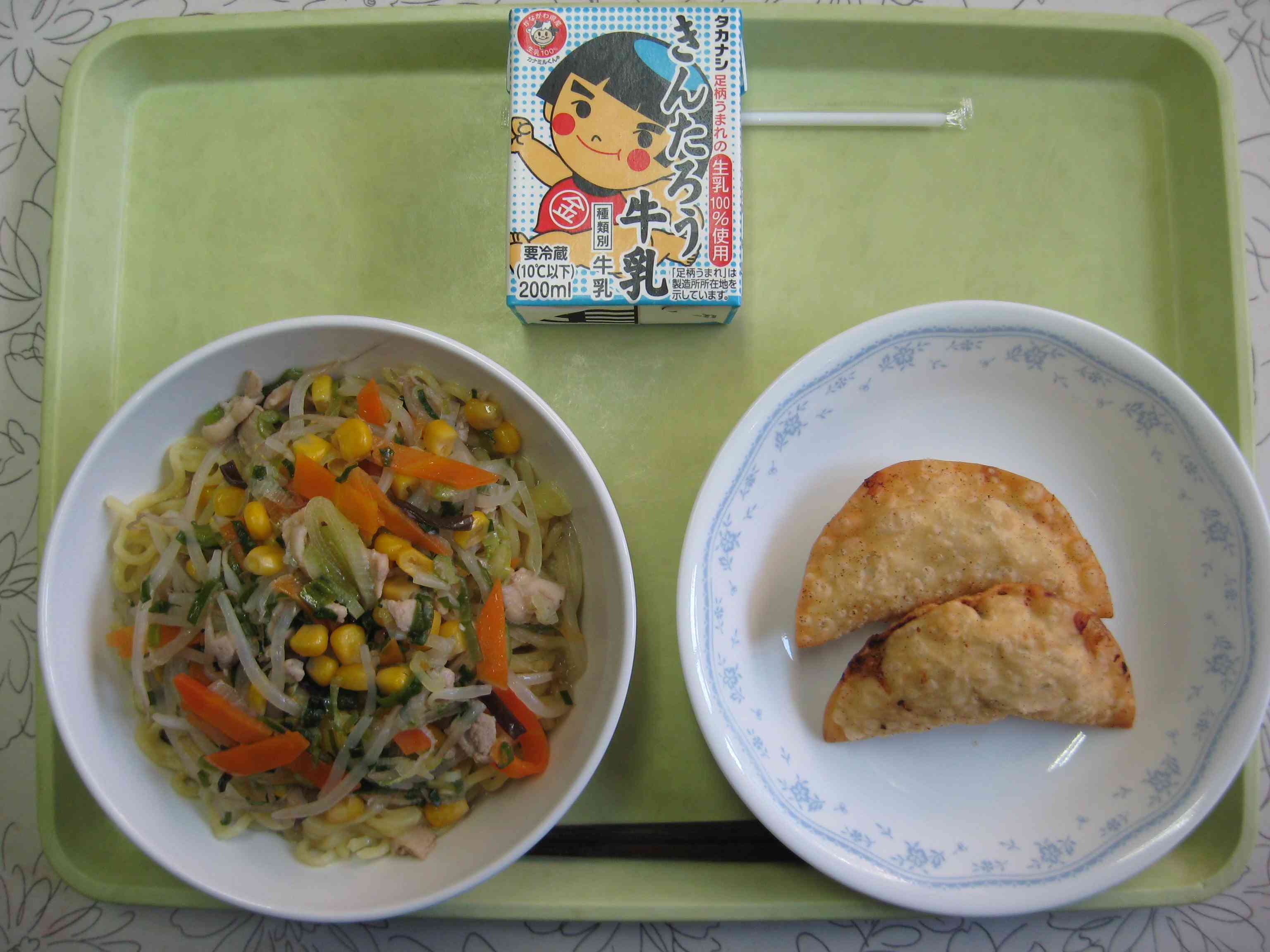 【今日の献立】 ねぎ塩ラーメン 牛乳 揚げギョウザ 【栄養教諭から】 今日は大人気の献立、ラーメンとギョウザです。ラーメンには、これからの季節、甘くやわらかくなるねぎをたくさん入れました。ビタミンたっぷりです。また、長ねぎだけでなく葉ねぎも入っています。ギョウザも一つ一つ手作りで計150個を包みました。