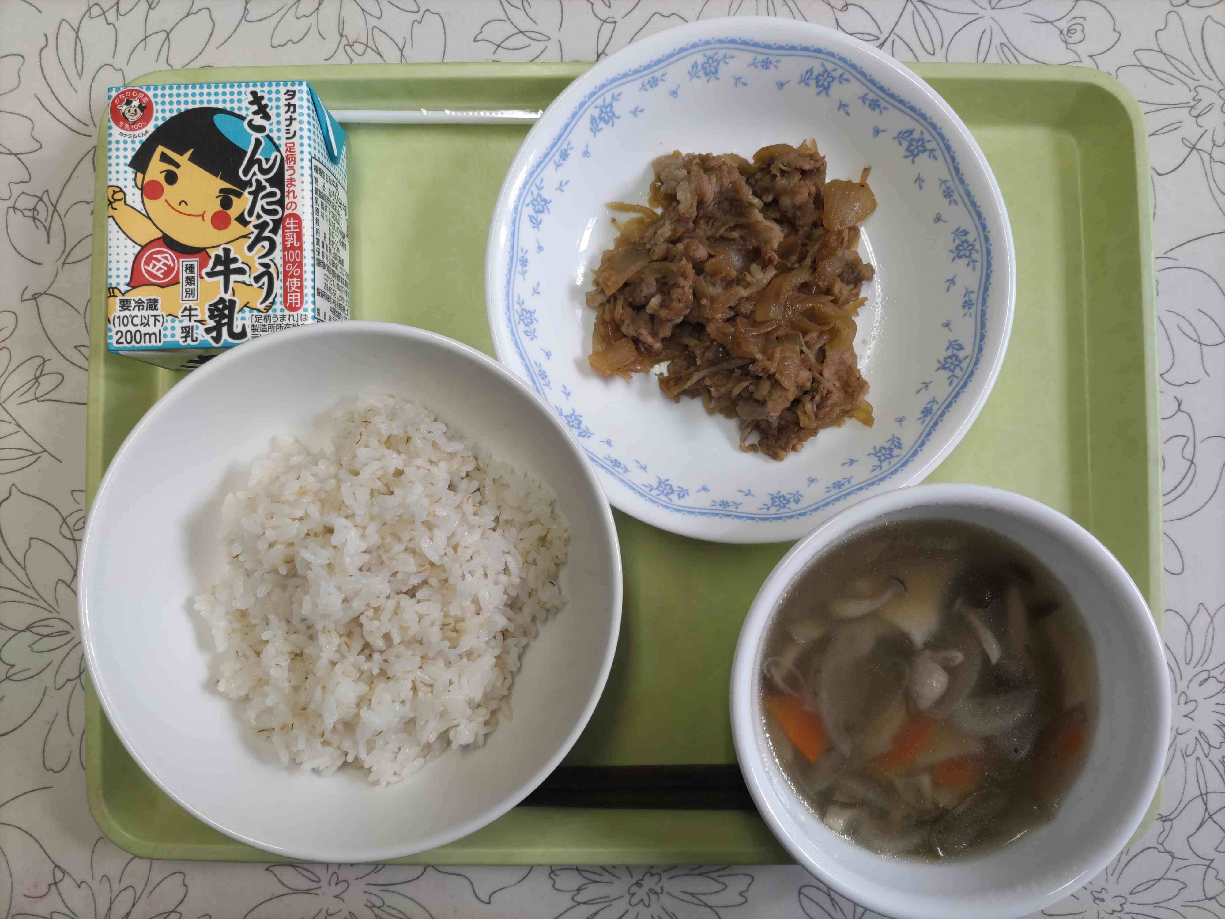 【今日の献立】 麦ごはん 牛乳 せんべい汁 十和田バラ焼き 【栄養教諭から】 今日のはこねランチは、せんべい汁です。青森の郷土料理ですが、岩手県でもよく食べられます。小麦粉から作る南部せんべいを小さく割り、お汁の中で煮込みます。いろいろな味がある南部せんべいは、せんべい汁には「かやき」と呼ばれるせんべい汁専用の物を使います。もちもちとしてとてもおいしいです。