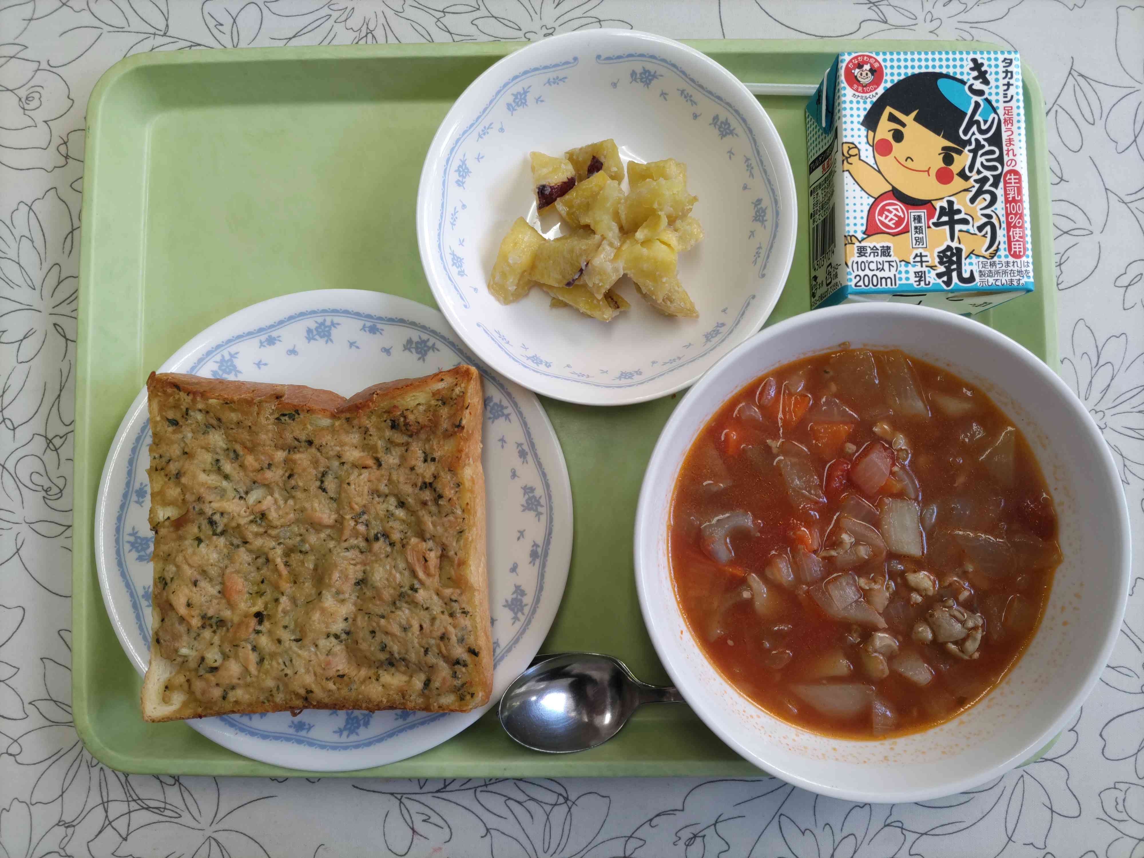 【今日の献立】 ツナトースト 牛乳 かみかみ野菜のラタトゥイユ スイートポテトクラスター 【栄養教諭から】 昨日に引き続き、今日も吉池旅館近藤様よりいただいたさつまいも「シルクスイート」を使用しました。シルクスイートはその名の通り絹のようななめらかな舌触りが特徴です。昨日食べましたが、本当になめらかで甘味も強く、とてもおいしかったです。今日は牛乳と砂糖を煮つめたタレをあげたお芋にからめました。おいしいお芋をありがとうございました。【添付ファイル】