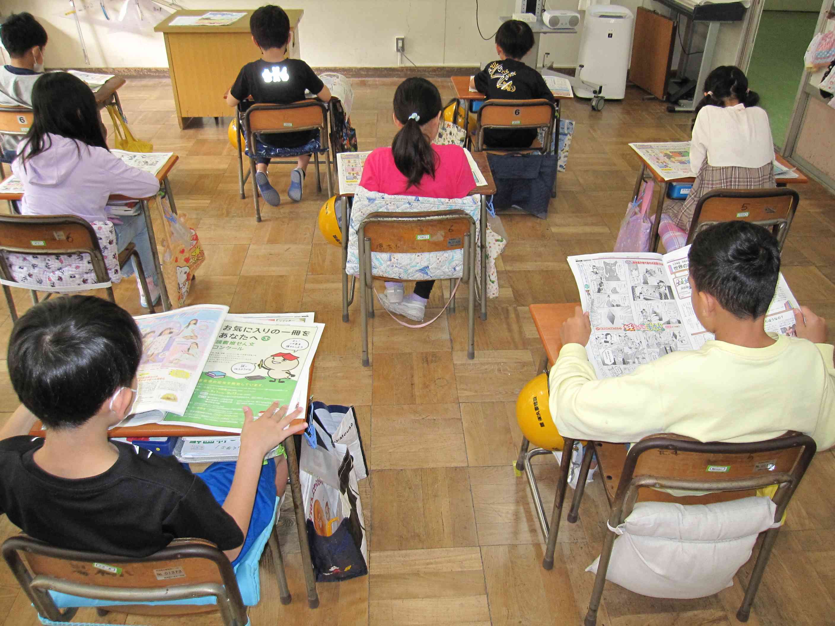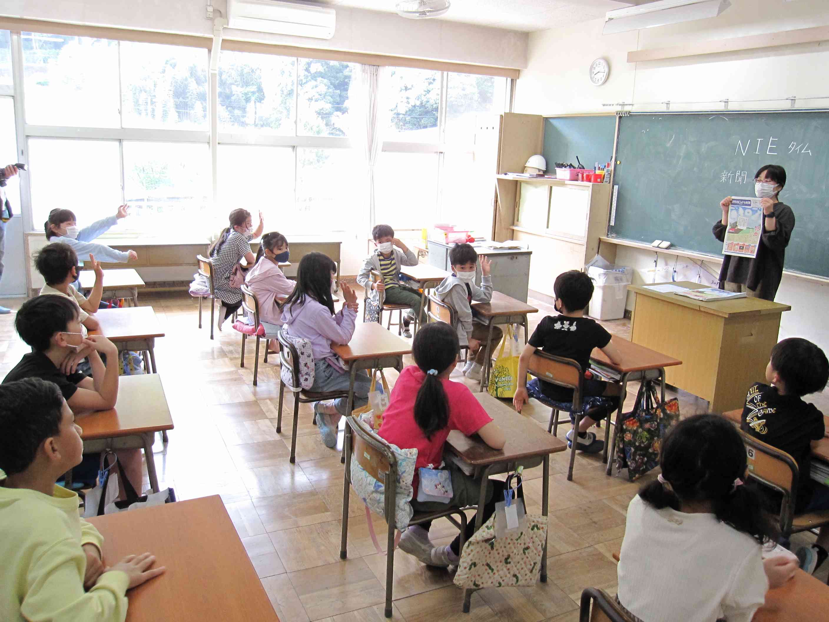 4月21日(金)「NIEタイム」がスタートしました。 今年度から、箱根町立公立小・中学校で新聞を活用し、情報活用能力を育成する取組が始まりました。 本校では、その取組を「NIEタイム」と名付けました。「NIE」はNewspaper In Educationの頭文字です。 毎週金曜日に「読売KODOMO新聞」が配付され、各学年の発達の段階に応じた取組が行われます。 この日は「NIEタイム」初日ということで、読売新聞社の取材もありました。記事は翌日22日(土)の読売新聞神奈川版に掲載されました。 写真は3年生の様子です。まずは新聞をめくり、自分が興味・関心のあるページを見つけるところからスタートしました。新聞をめくること自体初めての子供も多く、「大人はもっと大きな新聞をめくっているからすごいね。」などの声が聞こえてきました。いろいろなページに目移りしていた子供たちも、お気に入りの記事が見つかると、集中して見たり、読んだりしていました。 6年生は興味・関心のあるページを見つけ、早速感想を書いていました。1年生からは「指が黒くなっちゃった」のようなかわいらしい声が聞こえてきました。 今後は、低学年であればカタカナや習った漢字探しをしたり、さらに上の学年は、ノートにお気に入りの記事を切り抜いてスクラップしていったり、感想を書き溜めていったりする予定です。ノートの購入は、昨年の開校150年記念の寄付を活用します。 新聞は家庭に持ち帰りますので、ぜひご家庭でも話題にしてみてください。【添付ファイル】
