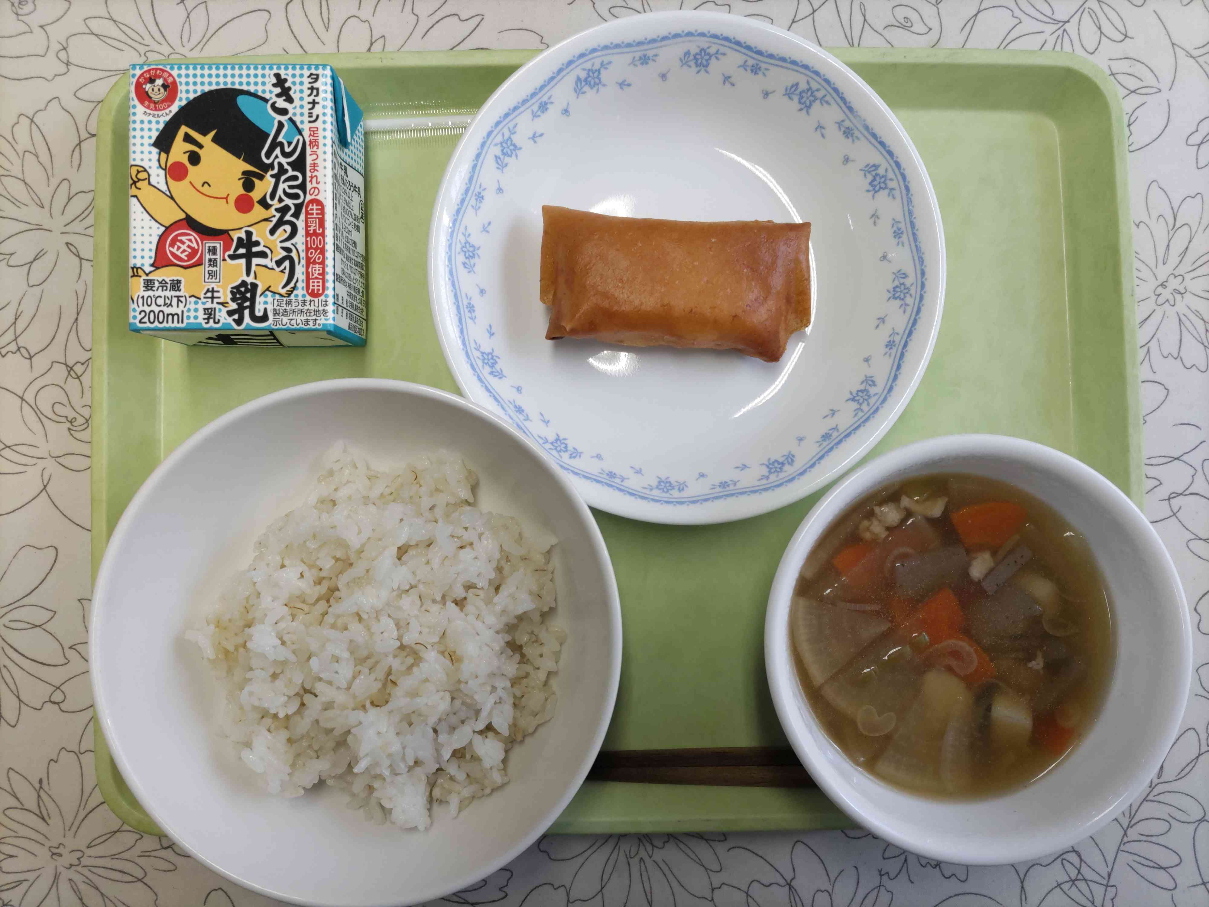 【今日の献立】 麦ごはん 牛乳 のっぺい汁 めかじきのまきまき揚げ 【栄養教諭から】 今日は、めかじきとチーズを春巻きの皮で包み揚げためかじきのまきまき揚げです。昨年度、仙石原小の栄養士さんに教わり、出したところ、とても好評でしたので、今年も作ってみました。名前もかわいらしくてよいですよね。 春巻きの皮は、くっついているので、ギョウザやシュウマイより手間はかかりますが、子供達が喜ぶためならがんばれます。【添付ファイル】