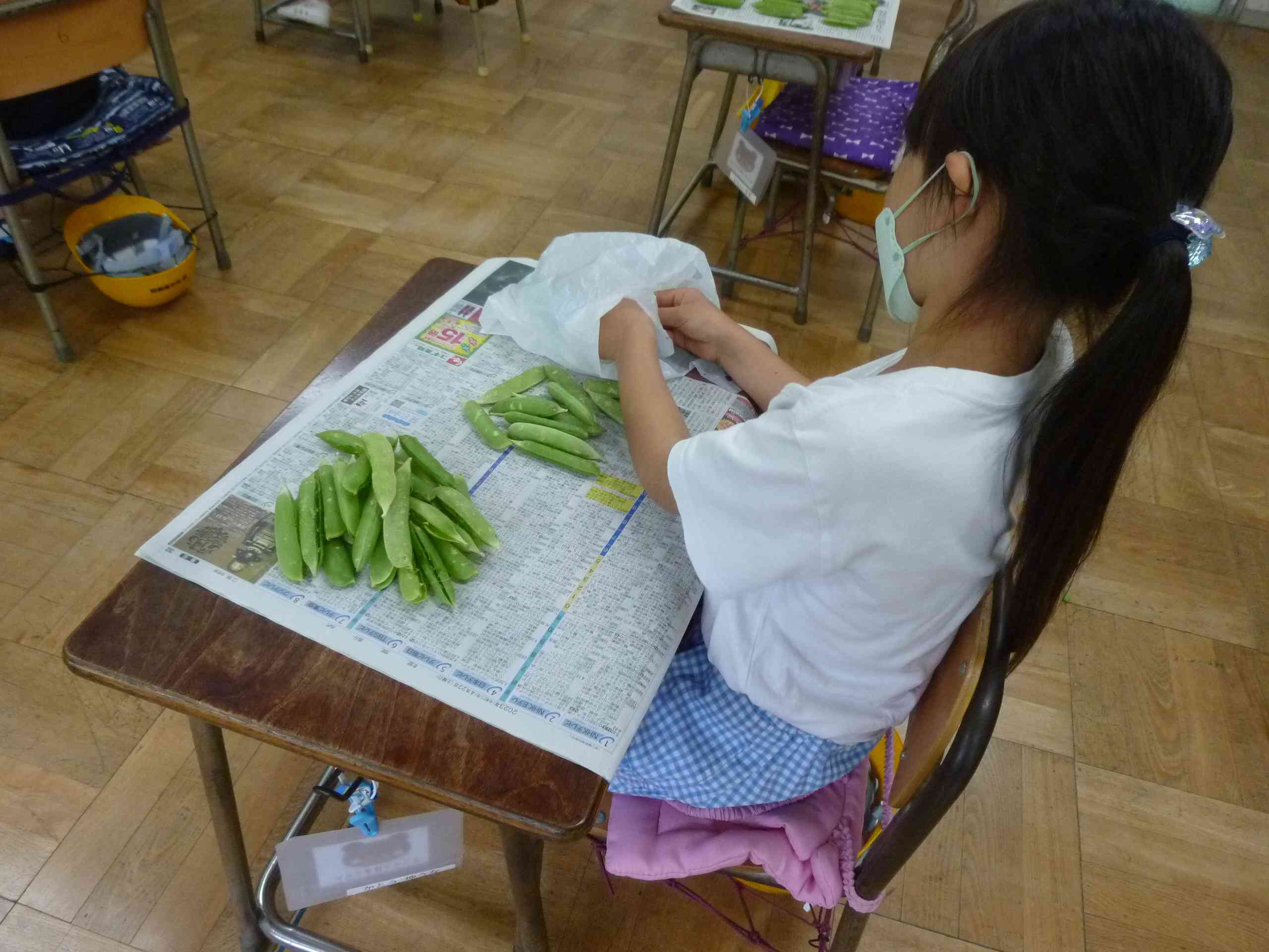 【今日の献立】 グリンピースご飯 牛乳 若竹汁 さわらの西京焼き ソフトクリームヨーグルト(みかん) 【栄養教諭から】 今日のはこねランチは旬のグリンピースを使った「グリンピースご飯」です。グリンピースは1時間目に2年生にさやとりをしてもらいました。「きれいに並んでいる」「8個も入っていた」など、グリンピースを観察しながらていねいにおこなっていました。実入りもよく立派なグリンピースでした。缶詰や冷凍のグリンピースとは違う甘味とほくほく感。おいしい旬の味を味わってほしいです。【添付ファイル】