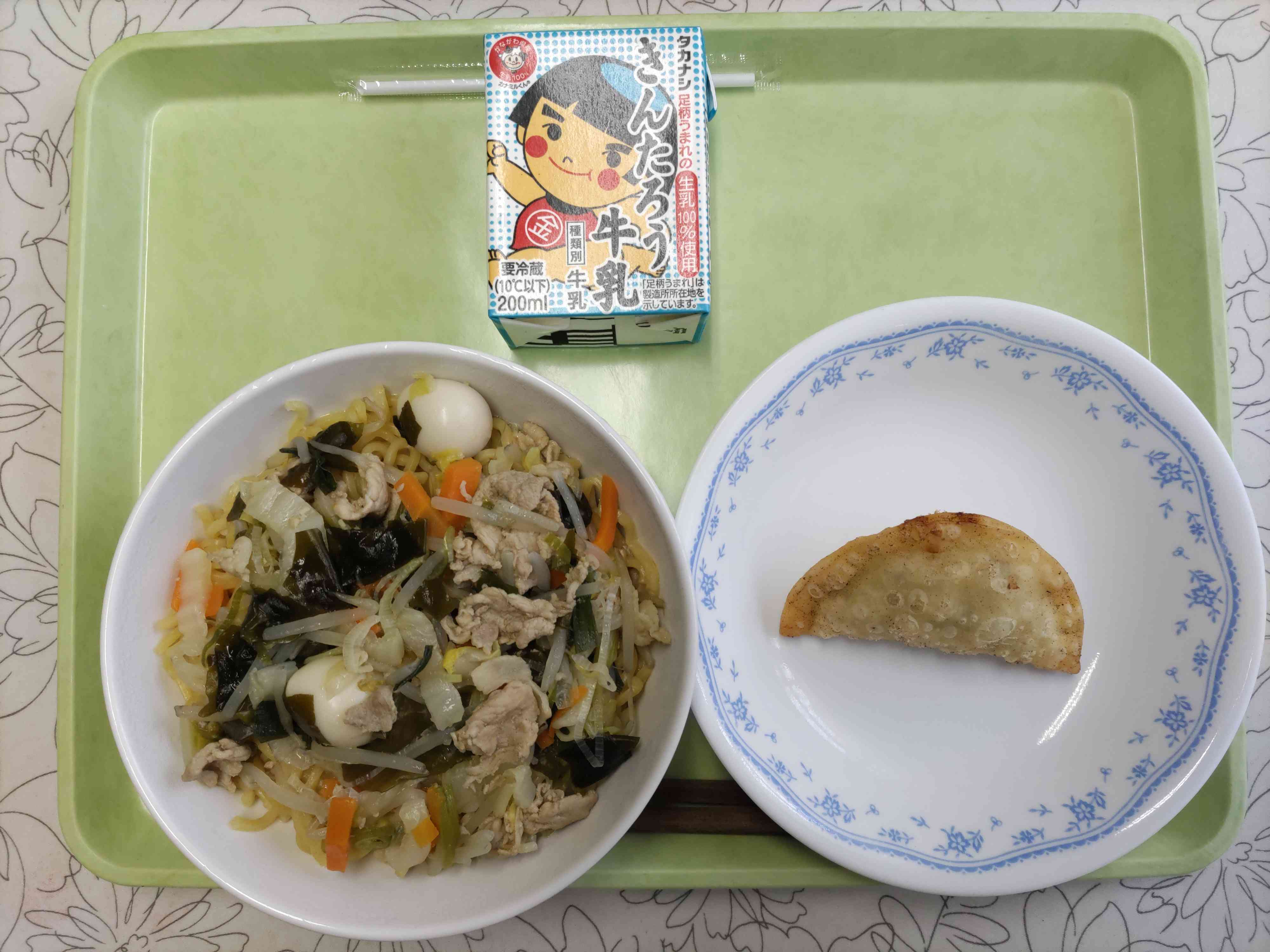 【今日の献立】 タンメン 牛乳 揚げギョウザ 【栄養教諭から】 今日は野菜たっぷりのタンメンです。同じ塩味のラーメンでも、出汁の種類や野菜の調理法によって、タンメンやチャンポン、塩ラーメンなど名前が変わるそうです。ちなみにタンメンは鶏ガラ出汁で野菜を煮込んで作ります。野菜がたくさん摂れてよいですね。ただラーメンは、塩分が多いので、出汁の香りを生かして減塩に努めたいですね。