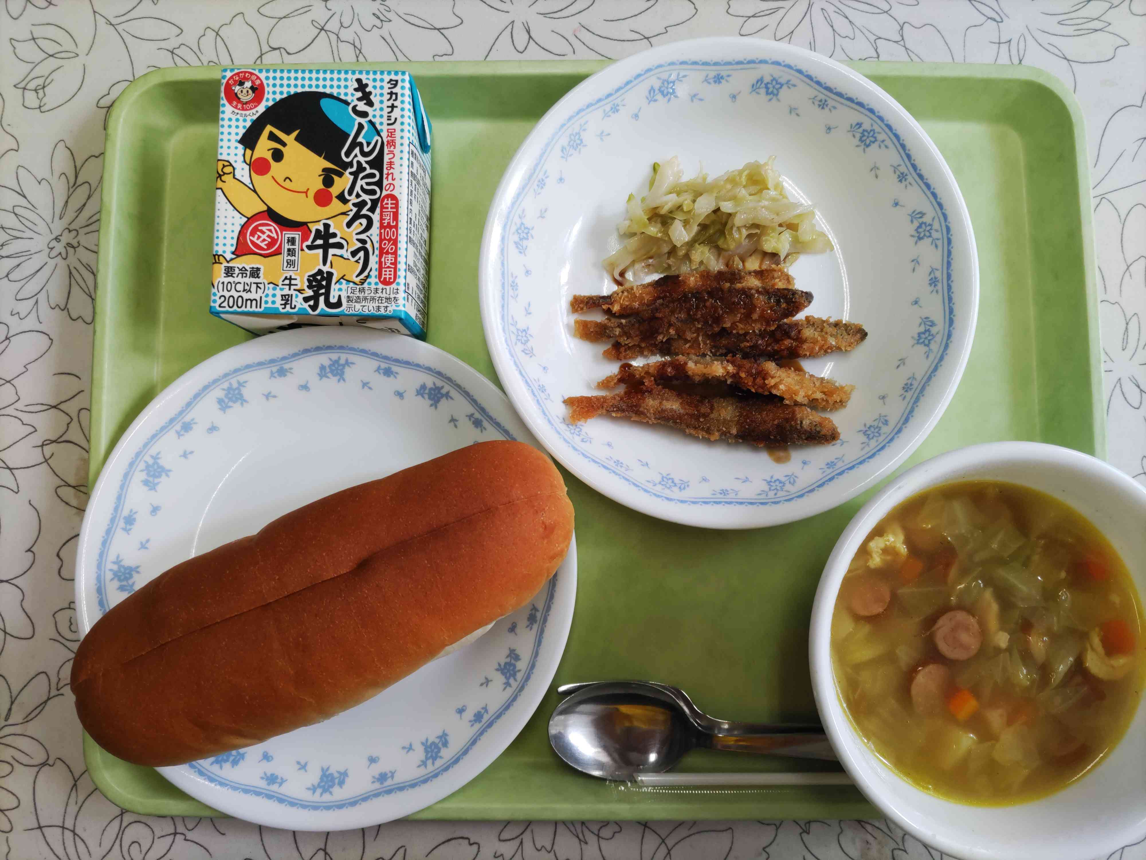 【今日の献立】 ワカサギドッグ 牛乳 カレースープ 【栄養士から】 今日のはこねランチは「ワカサギドッグ」です。箱根町の公立小中学校のオリジナルメニューです。フライにしたワカサギをホットドッグのようにパンにはさんで食べます。ワカサギは芦ノ湖でとれたものを給食で使用しています。今回も芦之湖漁業組合様から町の魚であるワカサギを箱根の子供たちに是非食べてほしいということでいただきました。新メニューの味はどうでしょうか。【添付ファイル】