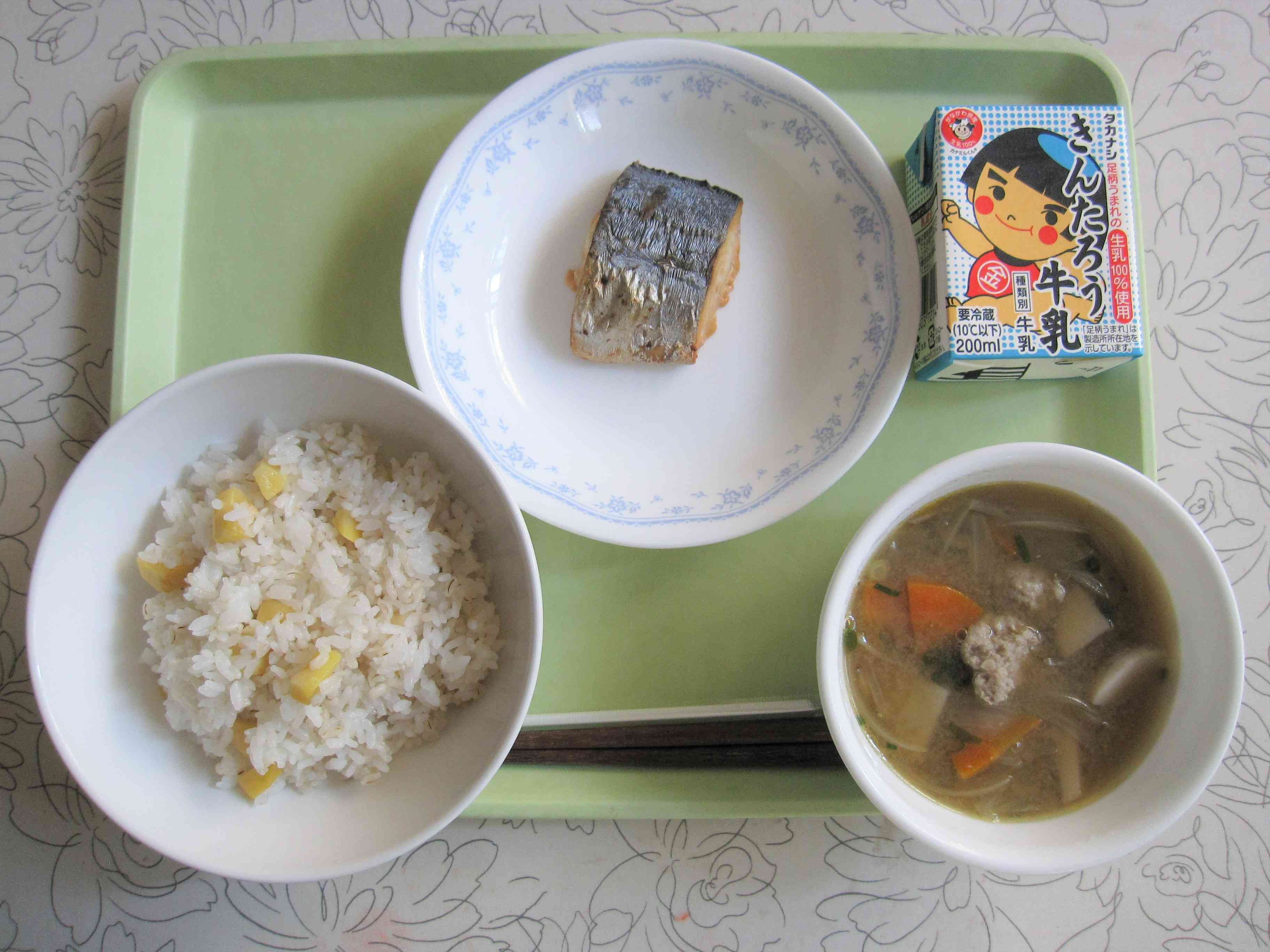 【今日の献立】 栗ご飯 牛乳 鶏団子のみそ汁 さわらの照り焼き 【栄養士から】 今日は秋の味覚がつまった栗ご飯です。10月27日の今日は「十三夜」です。十三夜の月は、十五夜に次いで美しいとされており、お団子や旬の栗や枝豆などをお供えして作物に感謝しながらお月見をします。十三夜の月は、別名「栗名月」と呼ばれています。これは、その時期に栗がよく収穫できるからだそうです。旬の作物に感謝しながら秋の味覚を楽しんでほしいです。【添付ファイル】