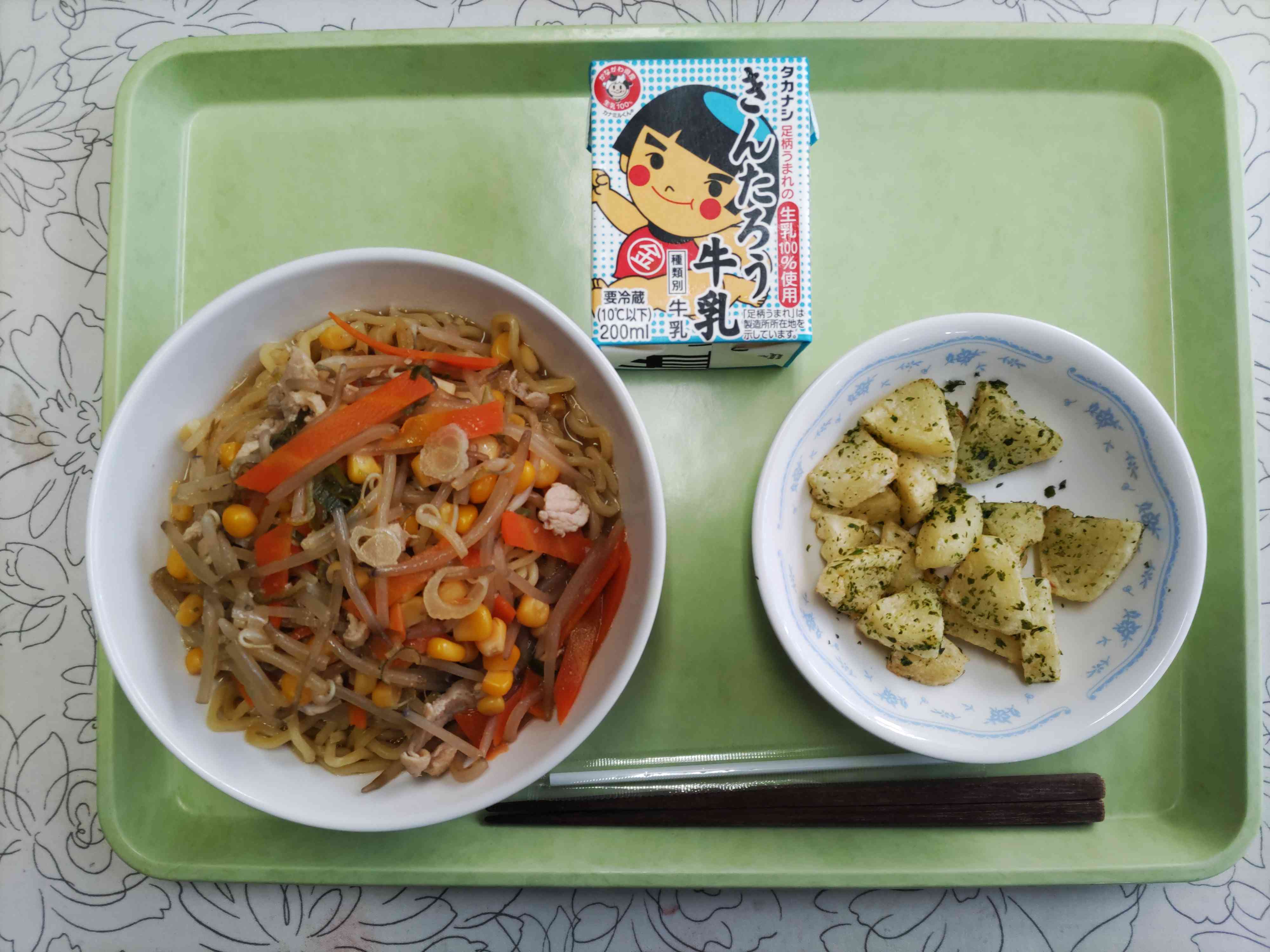 【今日の献立】 みそラーメン 牛乳 のり塩ポテト 【栄養士から】 ラーメンはもともと、中国で誕生した麺料理で日本に広く知れ渡ったのは明治時代以降といわれています。1910年に日本人が東京の浅草でひらいた中華料理店で出された麺料理が発祥ともいわれています。中華料理店では12人の中国人の料理人さんたちが中国のラーメンを日本人に合うようにメニューを考えたそうです。その後、多くの日本人がスープや麺に改良を加えることで現在の日本のラーメンが誕生しました。湯本小の給食ではしょう油ラーメン、みそラーメン、ねぎ塩ラーメンなどがありますが、皆さんはどのラーメンが好きですか?体を作るお肉や体の調子をととのえる野菜が入っています。麺やスープと一緒に残さず食べましょう。【添付ファイル】