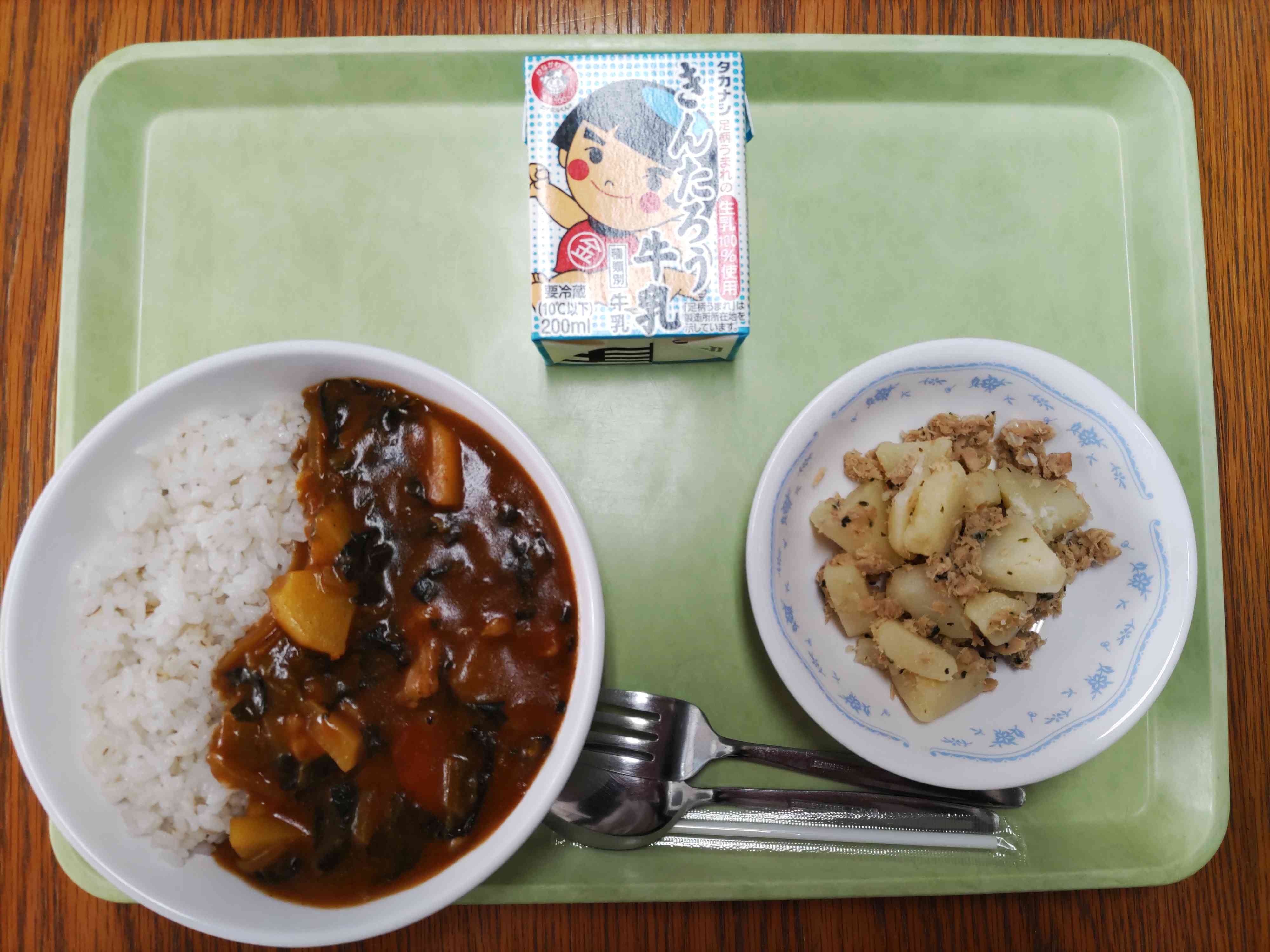 【今日の献立】 ポパイカレー 牛乳 ツナじゃが 【栄養士から】 今日のカレーはポパイカレーです。これは「ポパイ」というほうれん草を食べると超人的なパワーを発揮するアメリカの漫画キャラクターにちなんでつけました。 ほうれん草は、漫画の中だけでなく本当に栄養満点な野菜です。特に、冬にとれるほうれん草は、夏のほうれん草の3倍の栄養があります。色のこい野菜は、ビタミンが豊富です。寒くてかさかさしてるお肌を強くしてくれたり、風邪の予防にも効果があります。今日も残さず食べて、寒さを乗り切りましょう。【添付ファイル】