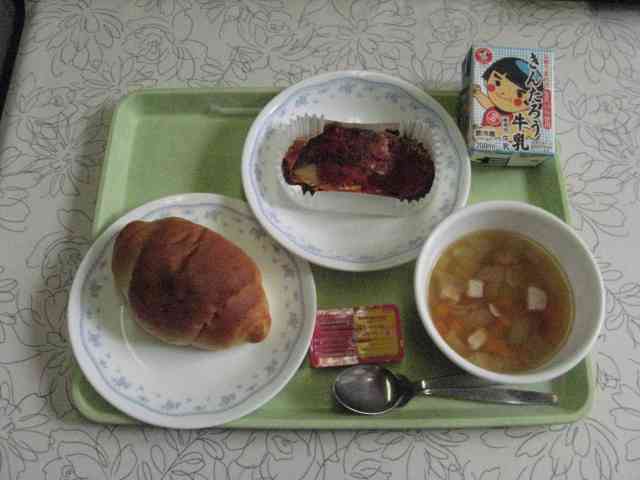 【今日のメニュー】 ロールパン、コロコロスープ、白身魚のイタリアン焼き、イチゴ&マーガリン、牛乳 【栄養教諭から】 コロコロスープには、ジャガイモやカボチャ等、6種類の具が入っています。名前の通り、どの具も小さな角切りにしました。 白身魚のイタリアン焼きは、今日は「さわら」を使いました。にんにくとタマネギ、バジルの入ったオリジナルトマトソースをのせて、オーブンで焼きました。