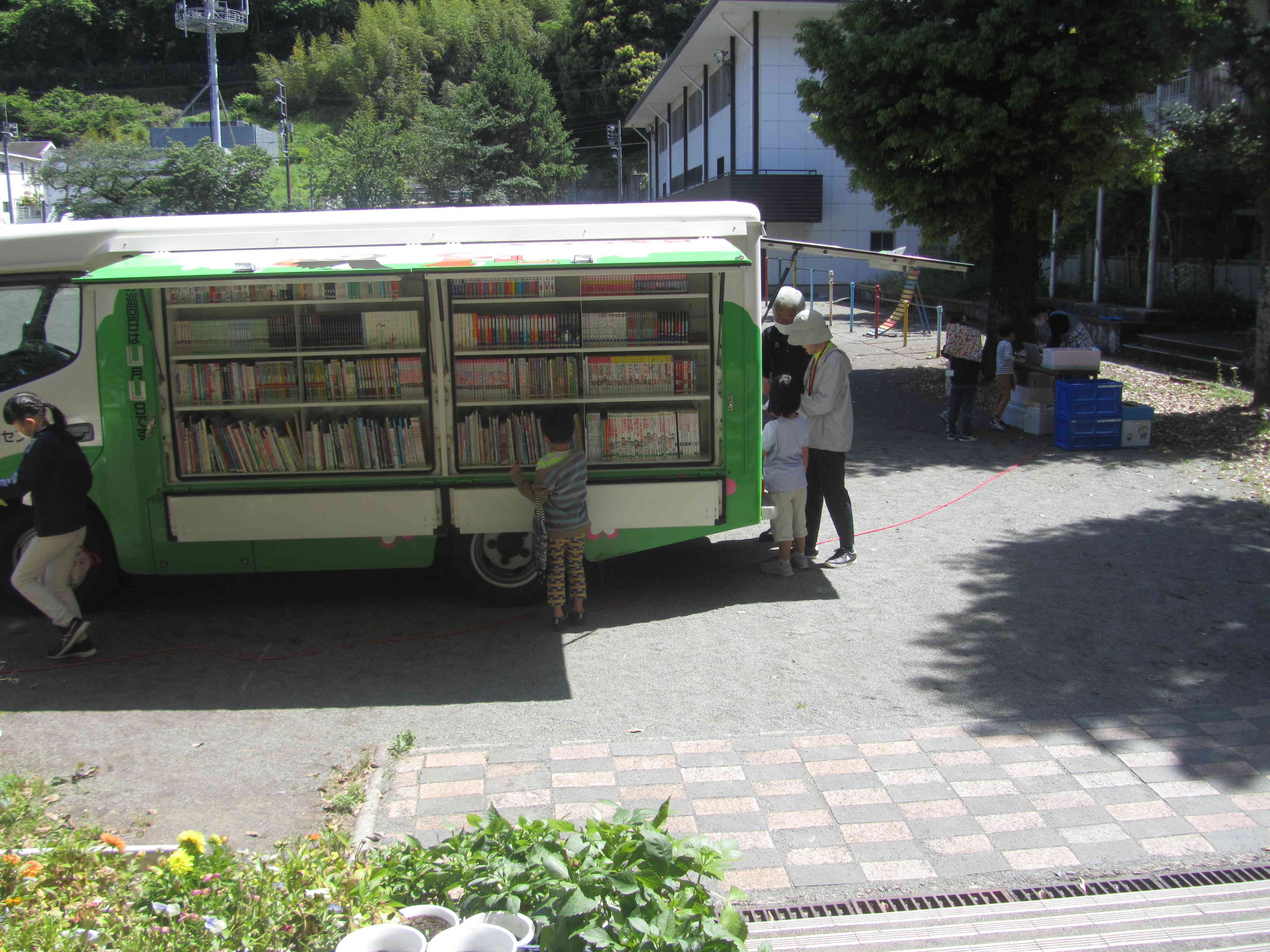 先週、きつつき号が湯本小学校に来てくれました。 子供たちがブックバックを手に、きつつき号の本を借りに集まっていました。 図書館に配架されている図鑑は持ち出し禁止になっていることが多く、なかなか借りることができないのですが、きつつき号の図鑑は借りることができます。 図鑑は低学年を中心に人気があり、この間も嬉しそうに図鑑を借りている子供がいました。 次回、きつつき号は5月24日(金)に来てくれます。 ぜひ、お気に入りの1冊を探しに来てください。【添付ファイル】