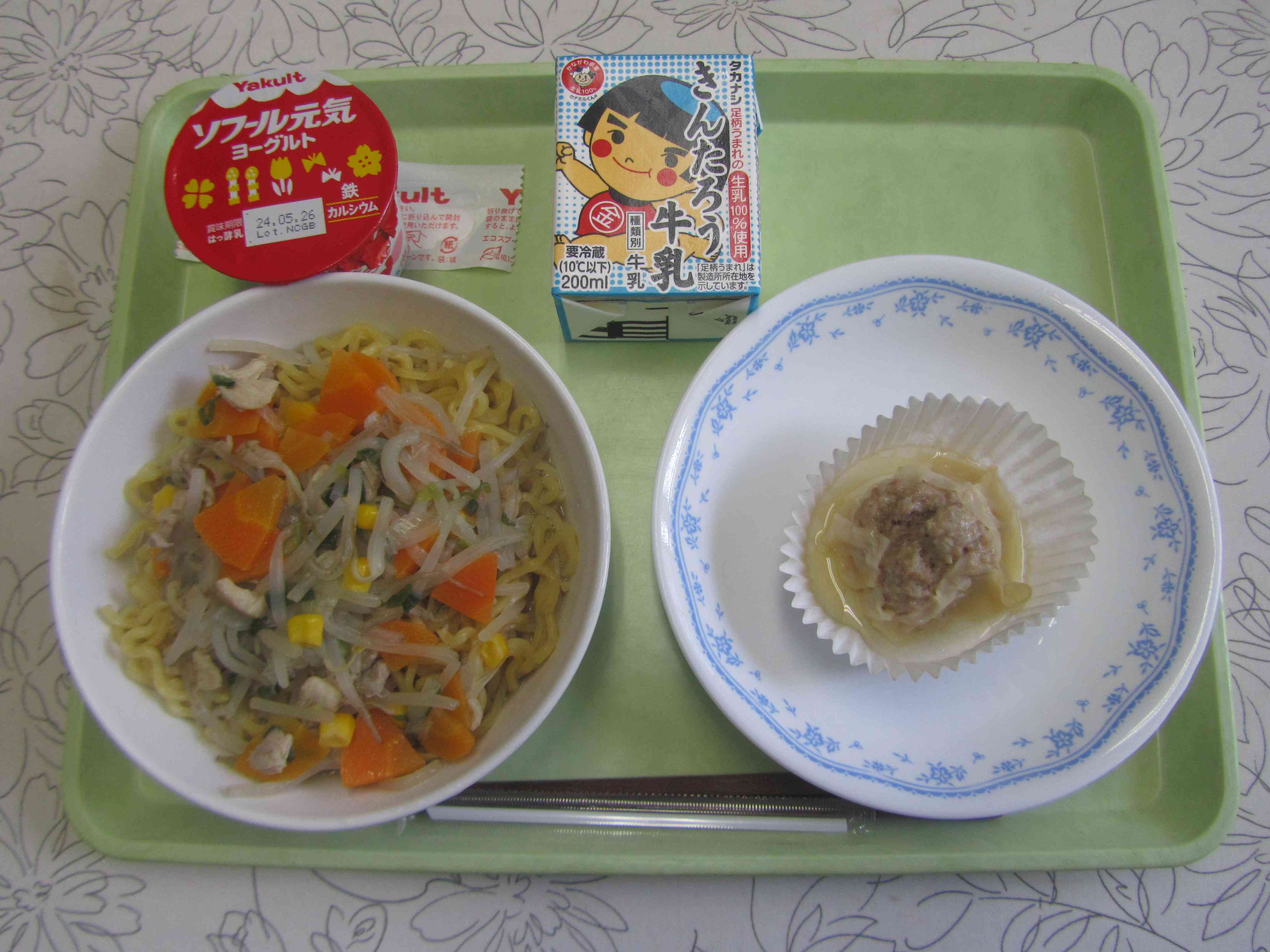 【今日の献立】 ねぎ塩ラーメン 牛乳 ジャンボシュウマイ 元気ヨーグルト 【栄養士より】 今日はシュウマイについてです。 神奈川県は、日本一シュウマイを食べる県だそうです。その中でも横浜市の消費が日本一です。横浜市には中華街 や有名なシュウマイの会社があることも関係しているようです。 シュウマイの上にグリンピースがのっていることがよくありませんか?ショートケーキのいちごのように、飾りとして、グリンピースをシュウマイの一番上にのせたことが始まりだそうです。これは日本人が考えたので、本場中国では、グリンピースののったシュウマイはないそうです。 今日のジャンボシュウマイは、一つ一つ具を丸めて、皮 で包むので、とっても時間がかかり大変ですが、調理員さんたちが頑張って作ってくれました。 作ってくれた人たちに感謝して食べましょう。【添付ファイル】