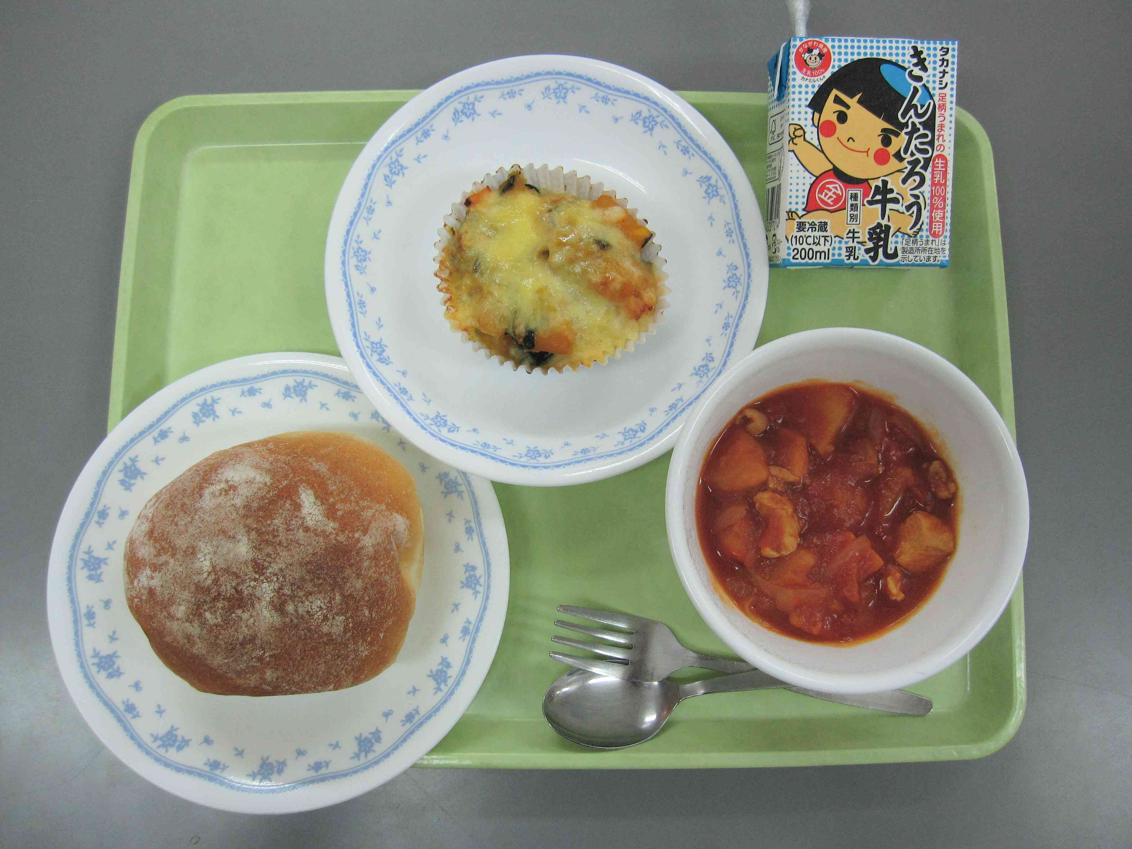 【今日の献立】 ソフトフランスパン 牛乳 チキンのトマト煮 かぼちゃのチーズ焼き 【栄養士より】 今日は、かぼちゃをたっぷり使ったかぼちゃのチーズ焼きです。 かぼちゃは秋の味覚のイメージがありますが、実は、かぼちゃの収穫ピークは7月~8月の夏だそうです。収穫後、数か月保管すると水分が抜けて甘みが増してよりおいしくなります。今日は子供たちも好きなチーズと一緒に焼いたグラタン風にしてみました。 寒くなってきたらより甘くなったかぼちゃも給食に出したいなと思います。【添付ファイル】