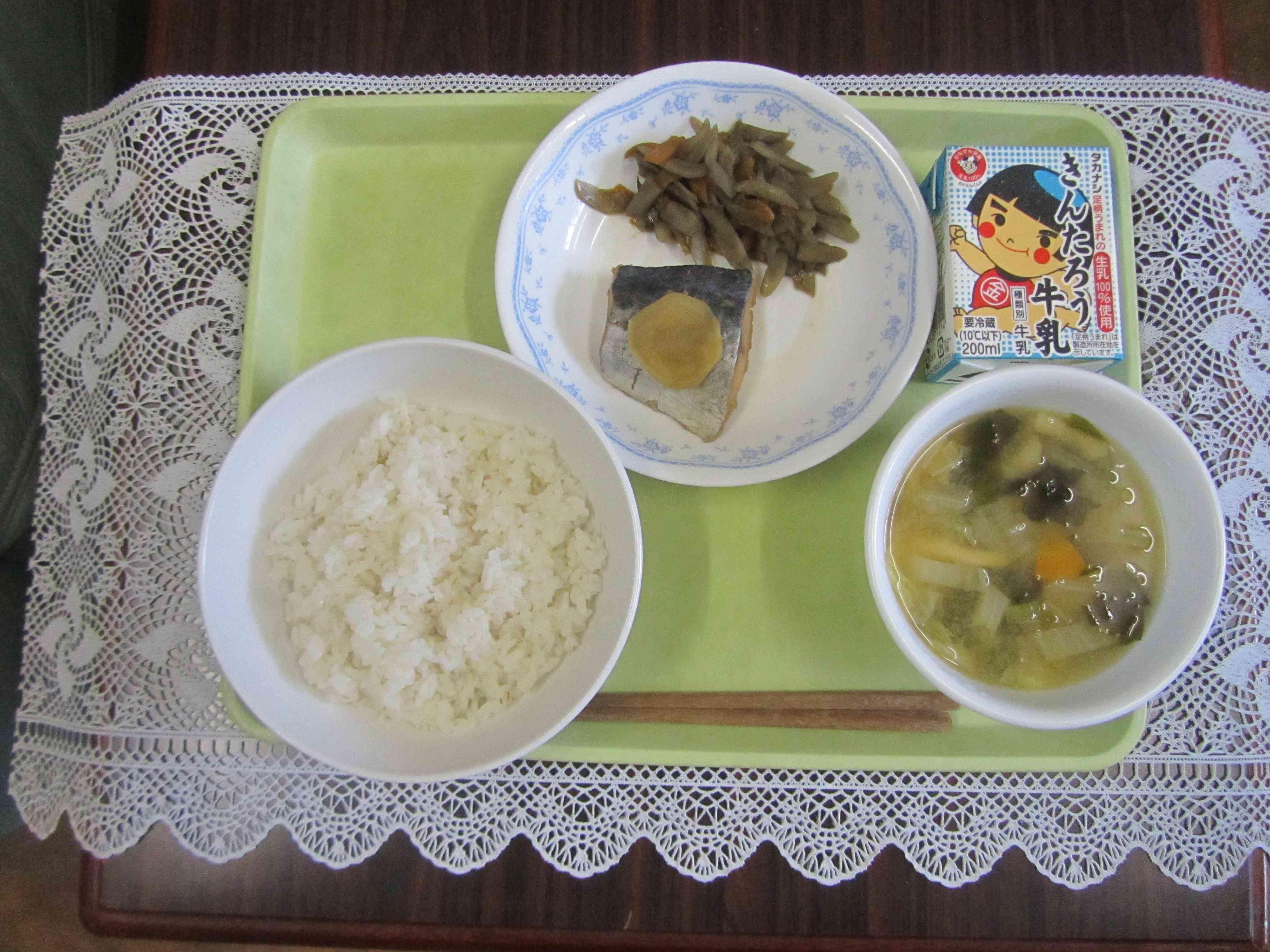【今日の献立】 麦ごはん 牛乳 白菜のみそ汁 さわらのしょうがに きんぴらごぼう 【栄養士より】 今日は暑い日にもぴったりな生姜を使ったさわらの生姜煮です。生姜は、一年中売られていますが、実は、秋が旬 の食べ物です。秋に収穫し、おいしさを保てるよう適切な温度と湿度で保管し、少しずつ出荷されています。 生姜には、体を温める働きや食欲を増す働き、疲れを回復する働きなど、食べると体に良いことがたくさんあります。また、魚の臭みをとる働きもあるので、さわらと一緒に煮ました。 生姜は、よく煮ると辛味も少なります。今日の生姜はよく煮ていて辛みが少なくなっているので、ひとくちチャレンジしてみてくださいね。【添付ファイル】