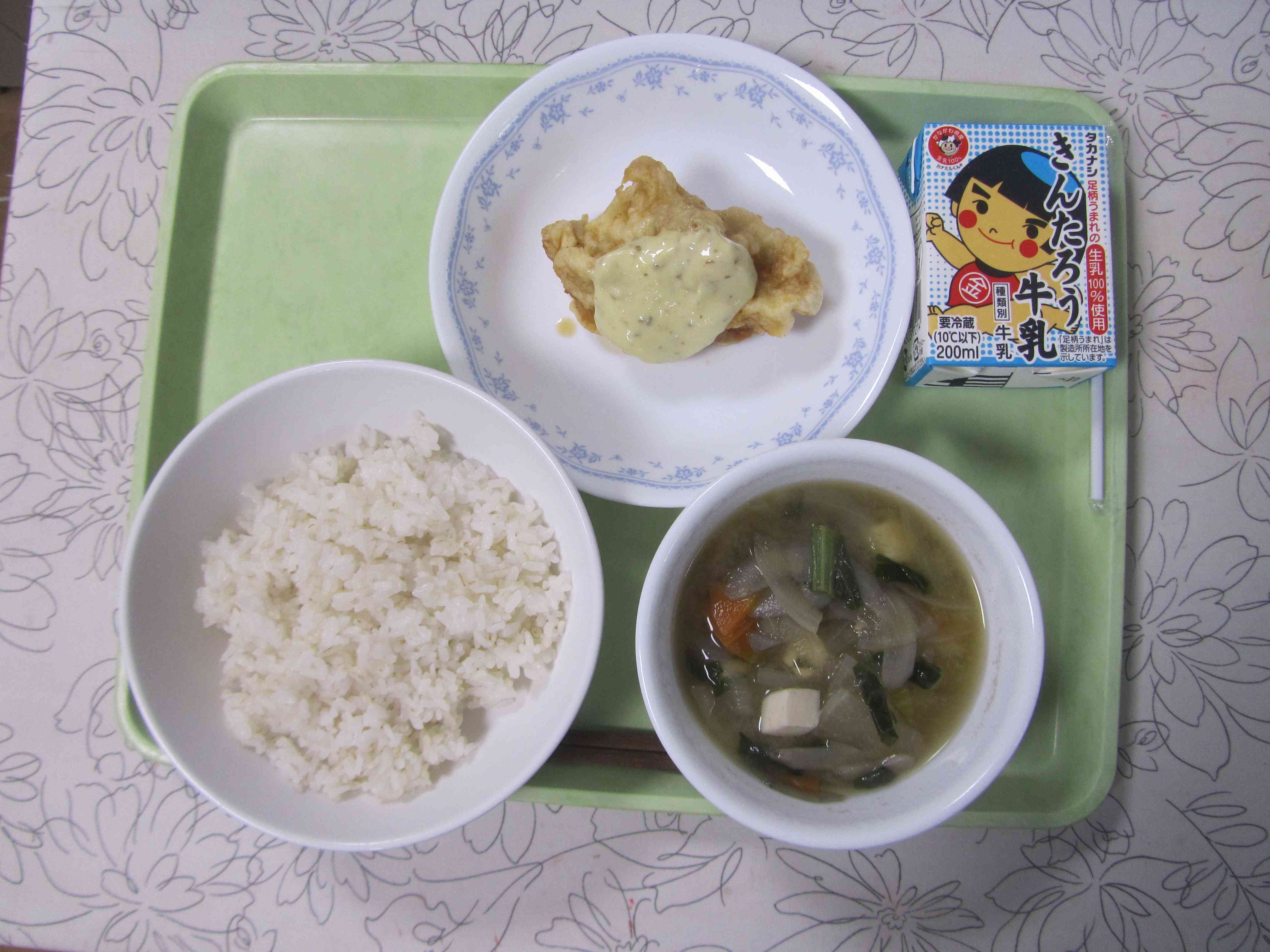 【今日の献立】 麦ごはん 牛乳 具沢山みそ汁 チキン南蛮 【栄養士より】 今日は宮崎県の郷土料理「チキン南蛮 」です。 チキン南蛮は、衣をつけて揚げた鶏肉に甘酢だれをかけたものです。玉ねぎやとうがらしが入った甘酢だれを南蛮酢といいます。この南蛮酢に揚げた鶏肉をひたすので、チキン南蛮といいます。 宮崎県は九州にあり、地鶏など「鶏 」が有名ところです。本場では、南蛮酢の上に、タルタルソースをかけたチキン南蛮を食べることが多いそうです。 チキン南蛮は、衣や切り身の大きさなど、特に決まりはないので、地域や家庭によっても違いがあるそうです。【添付ファイル】