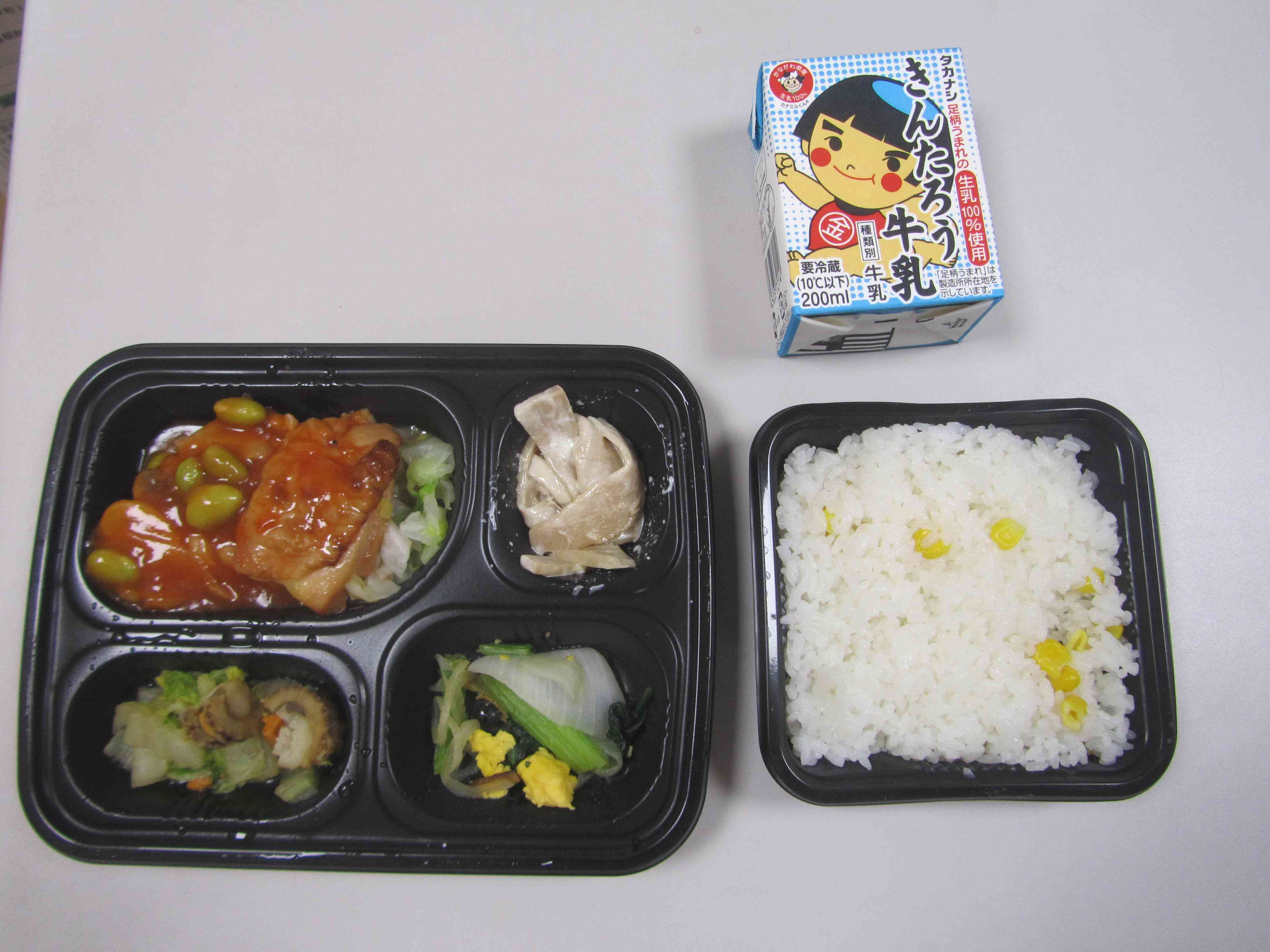 【今日の献立】 とうもろこしご飯 牛乳 鶏肉とトマトの煮込み 小松菜のオイスター炒め エリンギのマヨ和え ホタテと野菜のうまに