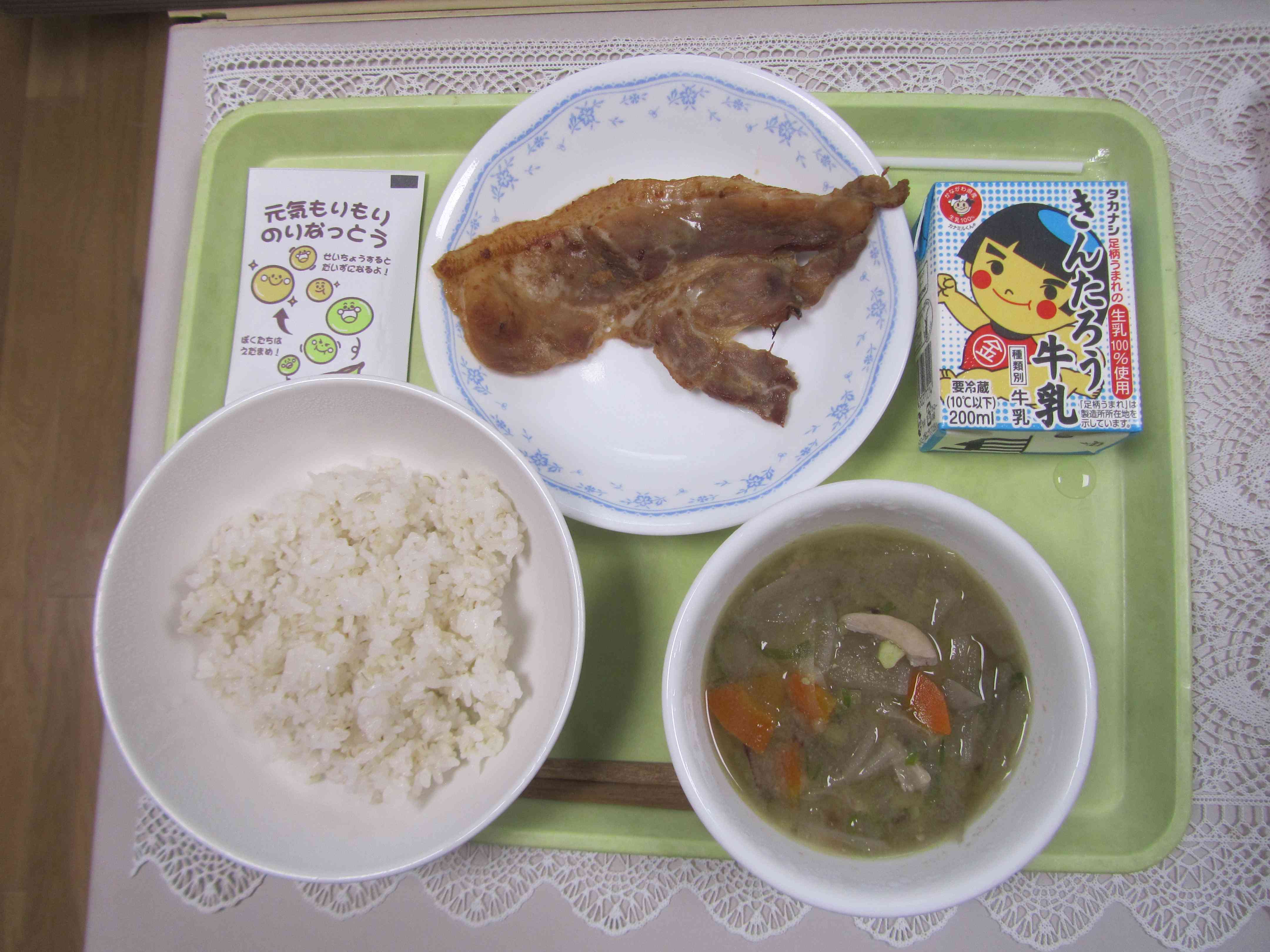 【今日の献立】 麦ごはん 牛乳 納豆ふりかけ さつま汁 豚肉のしょうが焼 き 今日は一段と寒いですね。そんな今日は体が温まる生姜をたっぷり使った豚肉のしょうが焼きです。 しょうがは、一年中出回りますが、秋が旬の食べ物です。秋 に収穫をおこない、おいしさを保つように大切に保管し、少しずつ出荷されます。しょうがには、体を温める働きや食欲を増 す働き、疲れを回復する働きなど、体に良いことがたくさんあります。また、魚の臭みをとる働きもあるので、煮魚の時にも大活躍です。【添付ファイル】