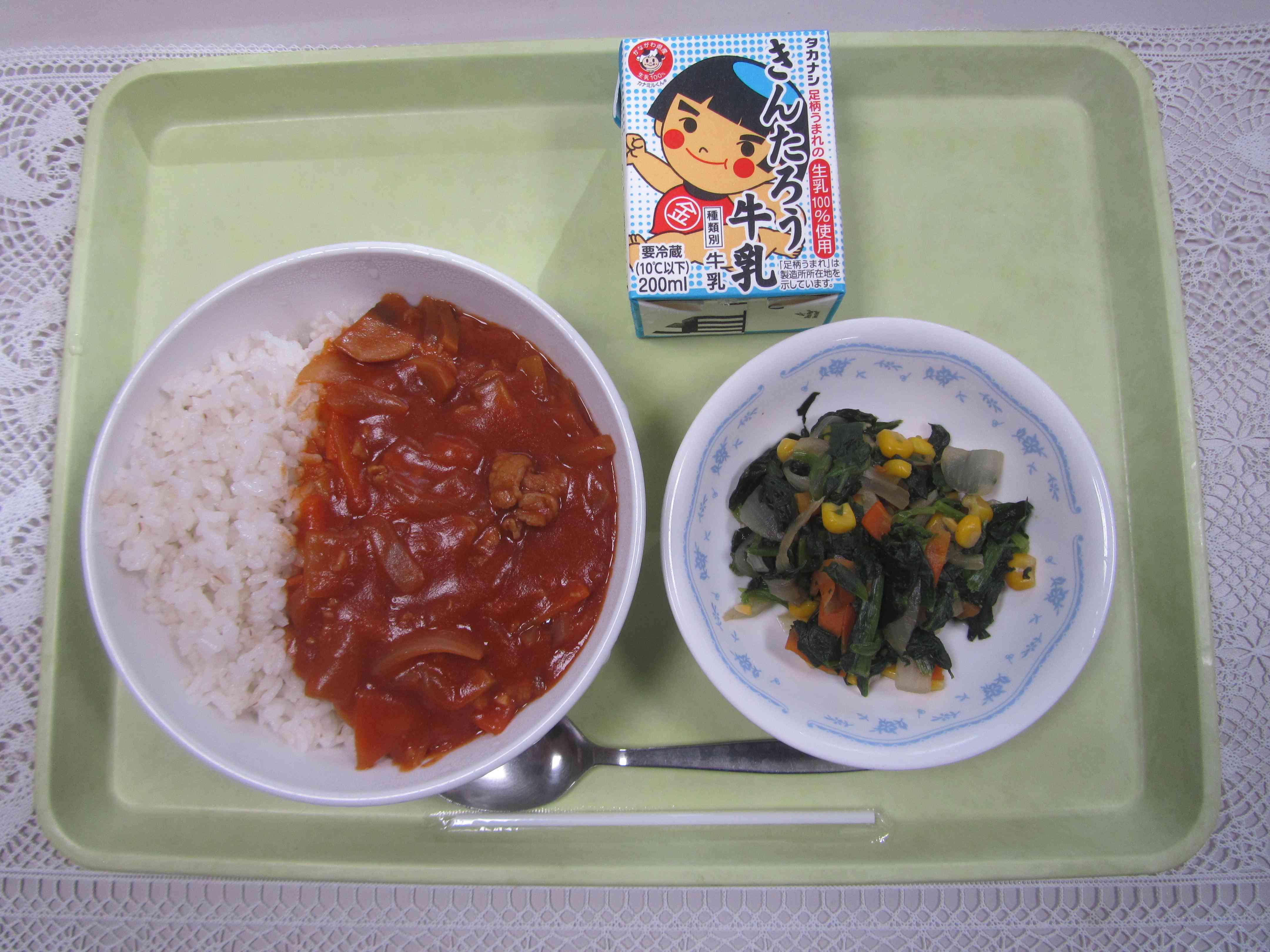 【今日の献立】 ハヤシライス 牛乳 ほうれん草のソテー 今日はほうれん草のお話です。ほうれん草は16世紀ごろ日本に伝わりました。冬が旬の野菜で、栄養はなんと夏の3倍にもなります。 ほうれん草といえば、葉っぱがギザギザで根っこが赤いのが特徴でした。しかし、最近では葉が丸く厚みがある西洋種のほうれん草の栽培が盛んになっていて、あまり見かけなくなってしまいました。西洋種は暑さに強いため、そのおかげで一年中ほうれん草が栽培できるようになりました。 ほうれん草は特に鉄分の多い、栄養満点の野菜です。今日はコーンと一緒にソテーにしましたので、たくさん食べてほしいですね。【添付ファイル】
