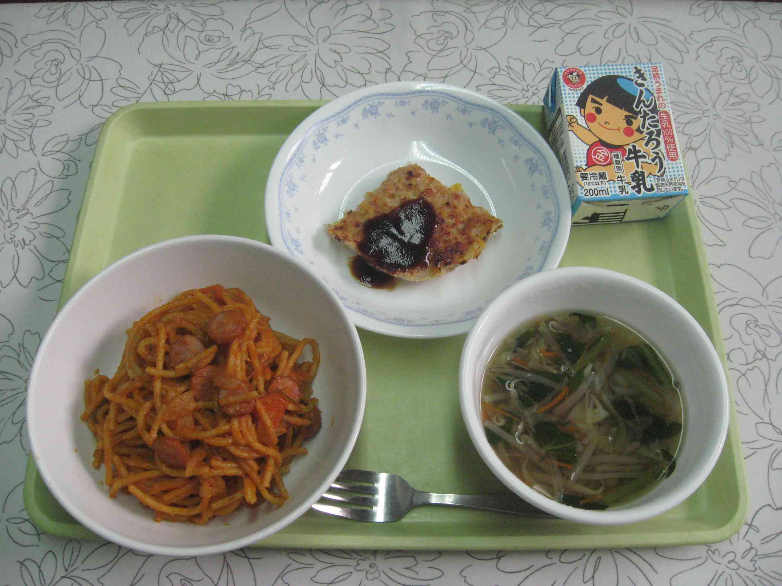 【今日のメニュー】 スパゲティナポリタン、ミートローフ、キャベツのスープ、牛乳 【栄養教諭から】 今日は、日本生まれのスパゲティ「ナポリタン」です。ナポリタンは、横浜のホテルの料理長が考案した料理だと言うのが有名な説です。 今日は、ケチャップにソースとバターを少し加えてコクを出しました。