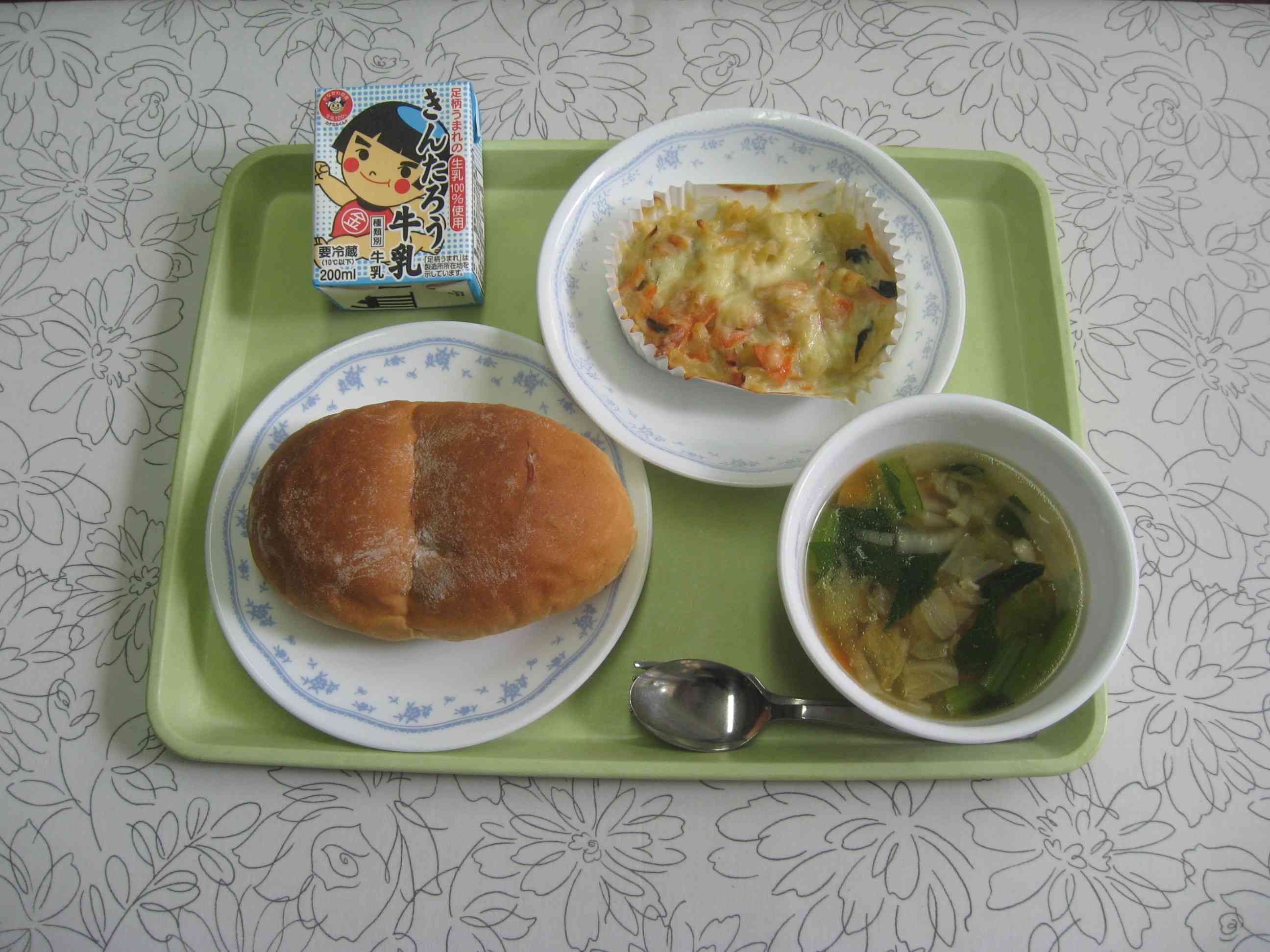 【今日のメニュー】 ソフトフランスパン、マカロニグラタン、野菜スープ、牛乳 【栄養教諭から】 給食のパンは、全部で12種類あります。今日のパンは「ソフトフランスパン」です。その見た目から、子どもたちはいろいろな名前をつけていますが、職員からは「ハイジの白パン」と呼ばれています。(いつもはもっと白いパンなのですが、今日はこんがり焼けているので、いつもの白さが伝わらず残念です。) 週に一回のパンの種類は、箱根町の4校で基本的に合わせて出しています。【添付ファイル】