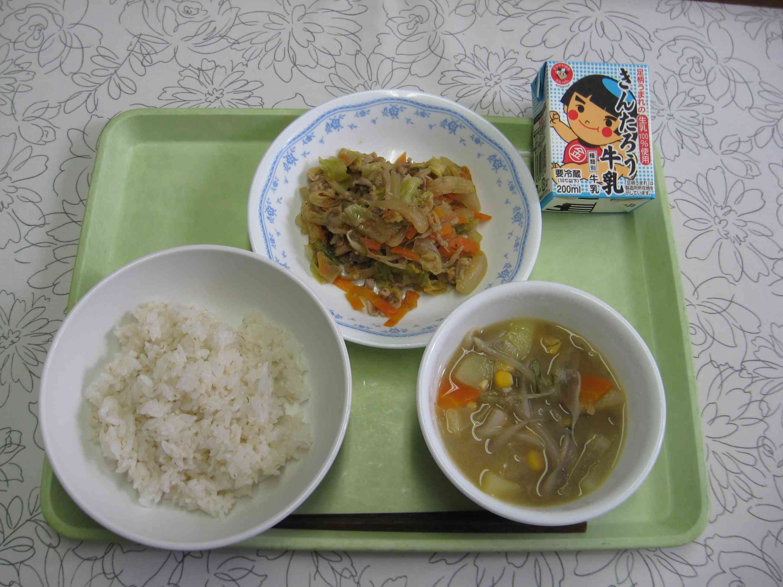 【今日のメニュー】 麦ごはん、道産子汁、ジンギスカン風炒め、牛乳 【栄養教諭から】 今日は、小中一貫教育共通献立の日です。ごはん、牛乳、道産子汁が、箱根町4校で共通となっています。そして、この献立は、箱根町と姉妹都市である洞爺湖町の給食メニューでもあります。 具だくさんの味噌汁の中には、北海道産のじゃがいもと人参を使いました。さらにこの汁の特徴は、仕上げに「バター」を入れるところです。バターを入れることでコクが出て、まろやかな味わいになります。【添付ファイル】