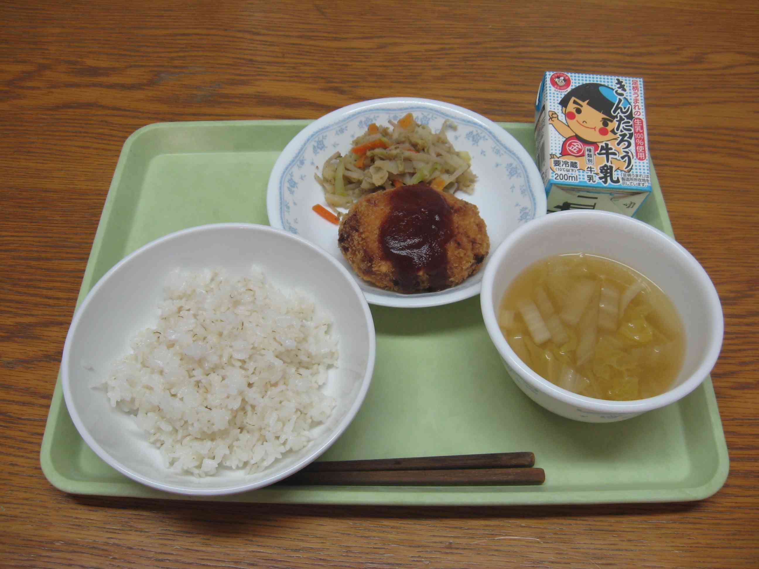 【今日のメニュー】 麦ごはん、白菜のみそ汁、北海道牧場コロッケ、ごま和え、牛乳 【栄養教諭から】 新年最初の給食は、北海道箱根牧場からいただいたじゃがいもを使ったコロッケです。 北海道箱根牧場は、箱根町出身の方が北海道に移り住み営んでいる牧場で、「郷土の人にも食べてほしい。」と毎年おいしいじゃがいもを送ってくださいます。やわらかくて甘みのあるじゃがいもは、コロッケにぴったりです。いつも感謝の気持ちを持ってほしいと思い、2019年、初日の給食に使いました。 北海道箱根牧場のみなさん、ありがとうございます。【添付ファイル】