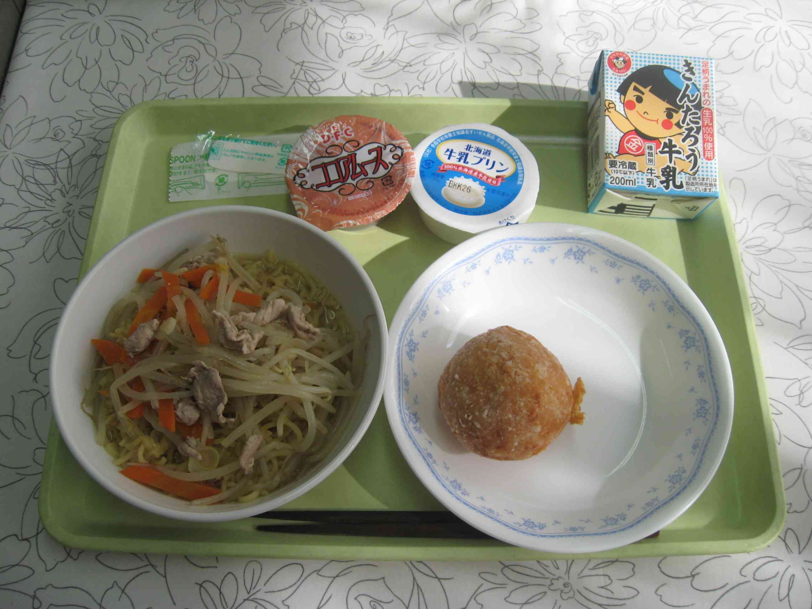 【今日のメニュー】 みそラーメン、じゃがまる、ミルクプリンorココアムース、牛乳 【栄養教諭から】 今日は、スペシャルな給食です。人気給食ランキング1位のラーメンとじゃがまる、そしてデザートはミルクプリンとココアムースのセレクトとなっています。ミルクプリンとココアムースでは、ココアムースが人気でした。