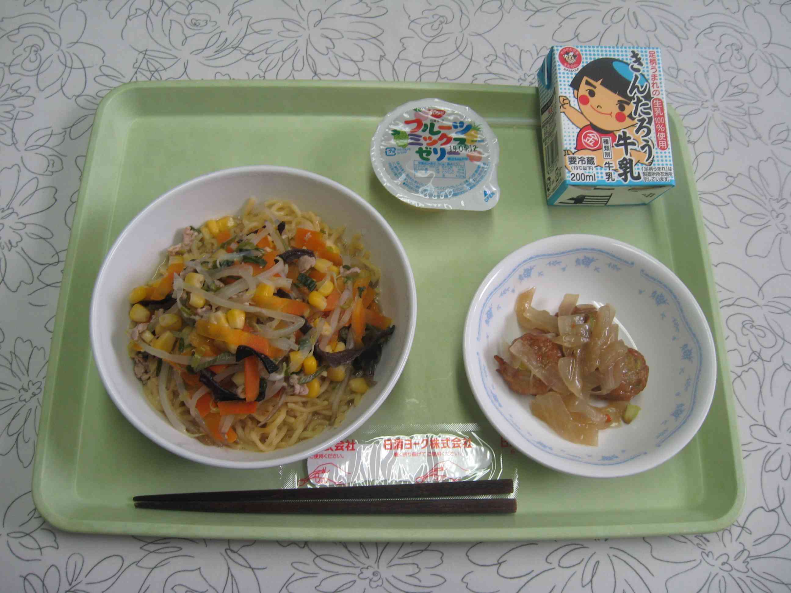 【今日のメニュー】 ねぎ塩ラーメン、元気ボールの甘酢あん、フルーツミックスゼリー、牛乳 【栄養教諭から】 今日は、子どもたちの大好きなラーメンです。前回、ねぎ塩ラーメンを出した際、とても好評だったので、今日はいつも以上に気合いを入れて作りました。 塩ラーメンはシンプルなだけに難しいです。野菜やお肉をよく炒めて、うま味を出すようにしています。鉄分アップのために、きくらげも入れました。