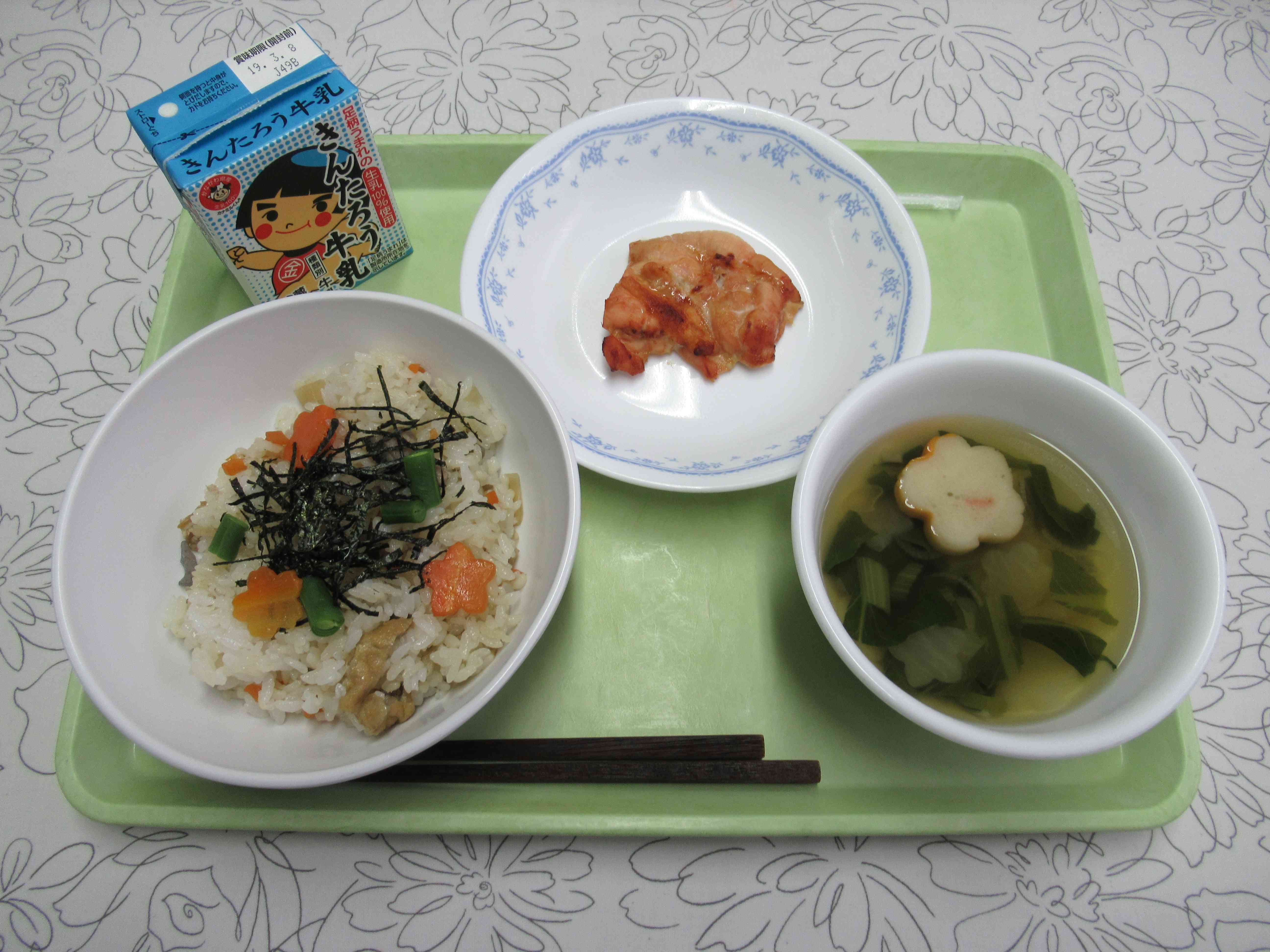 【今日のメニュー】 ちらしずし、ぎゅうにゅう、すましじる、とりのてりやき 【栄養教諭から】 今日は小中一貫教育共通献立で、2日早いひなまつり献立です。今日はあいにくのお天気で寒いですが、湯本駅周辺は早咲きの桜も咲いていて、春の訪れを感じます。給食でも、ちらし寿司、すまし汁の中に、たくさんのお花を咲かせました。子どもたちの笑顔が楽しみです。