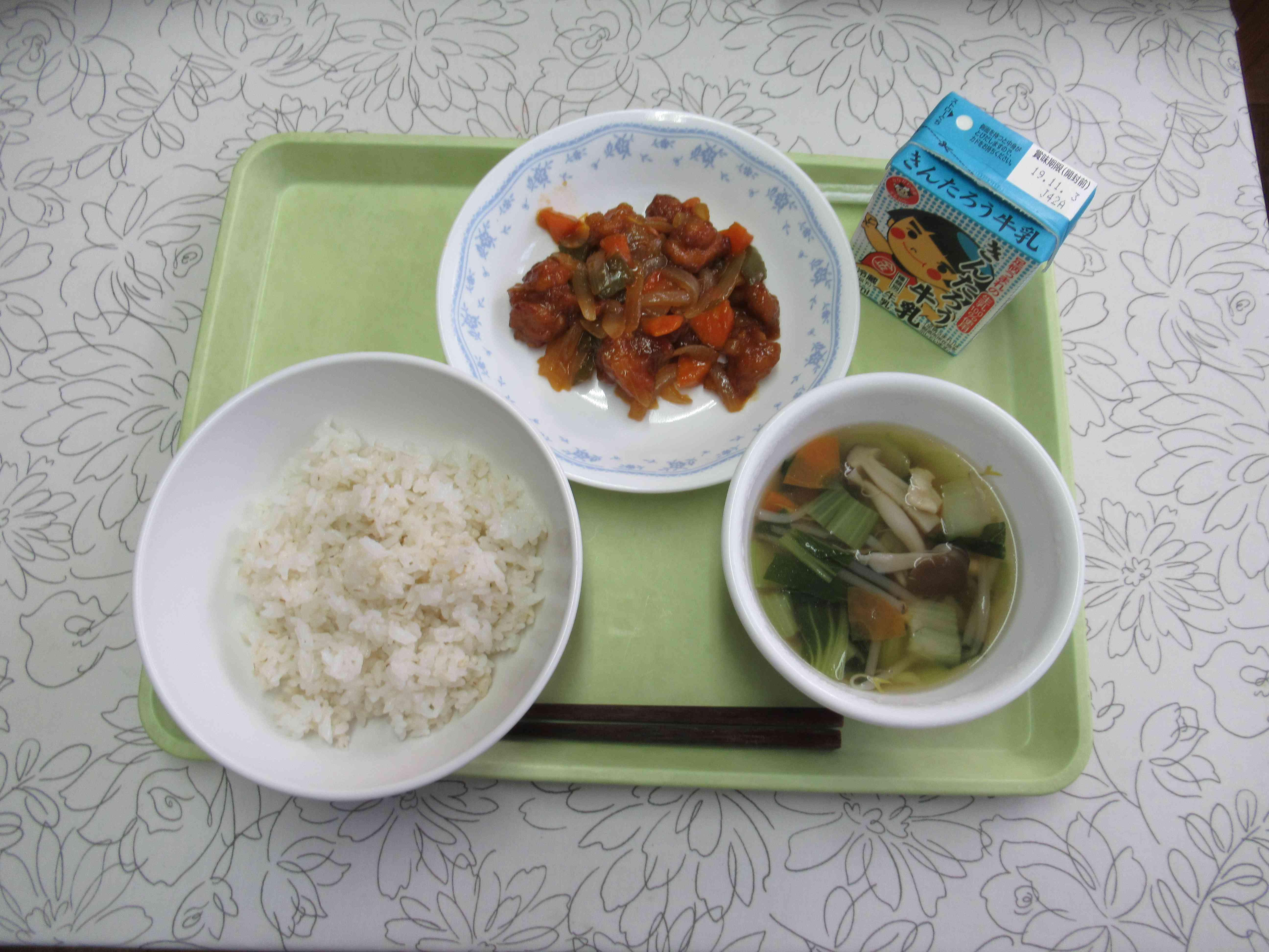 【メニュー】 麦ごはん 牛乳 チンゲンサイのスープ 酢鶏 【栄養教諭から】 今回は酢豚を鶏肉で作った酢鶏です。酢豚は肉を一度揚げてから作るので、「手間がかかる」と敬遠しがちでした。しかし、調理員さんに中華が得意な方がいらっしゃるので、満を持して今回久しぶりに出しました。子どもたちが食べやすいように少し酸味はおさえました。
