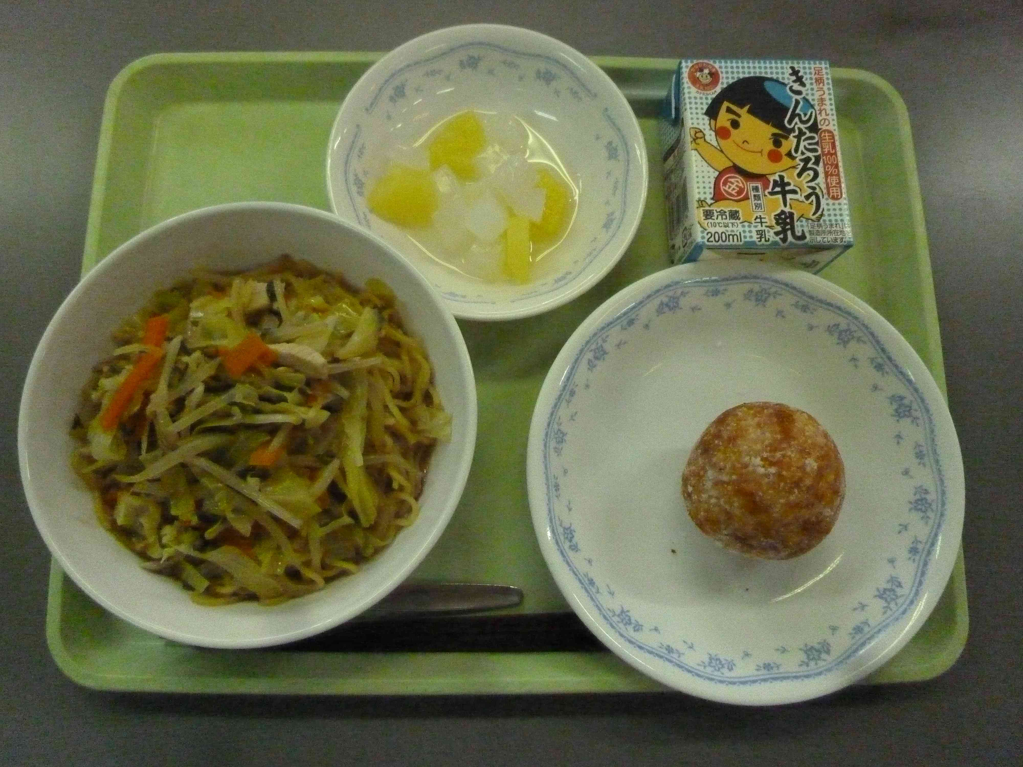 【メニュー】 しょうゆラーメン 牛乳 じゃがまる ナタデココいりフルーツ 【栄養教諭から】 今日は先月おこなった好きな給食アンケートで上位だった2品「しょうゆラーメン」と「じゃがまる」です。「じゃがまる」はお家でも作ってもらいたいとレシピを聞いてくる子もいるほどです。蒸したじゃがいもをつぶし、チーズを混ぜて丸めて揚げます。ぜひ、ご家庭でも作ってみてください。