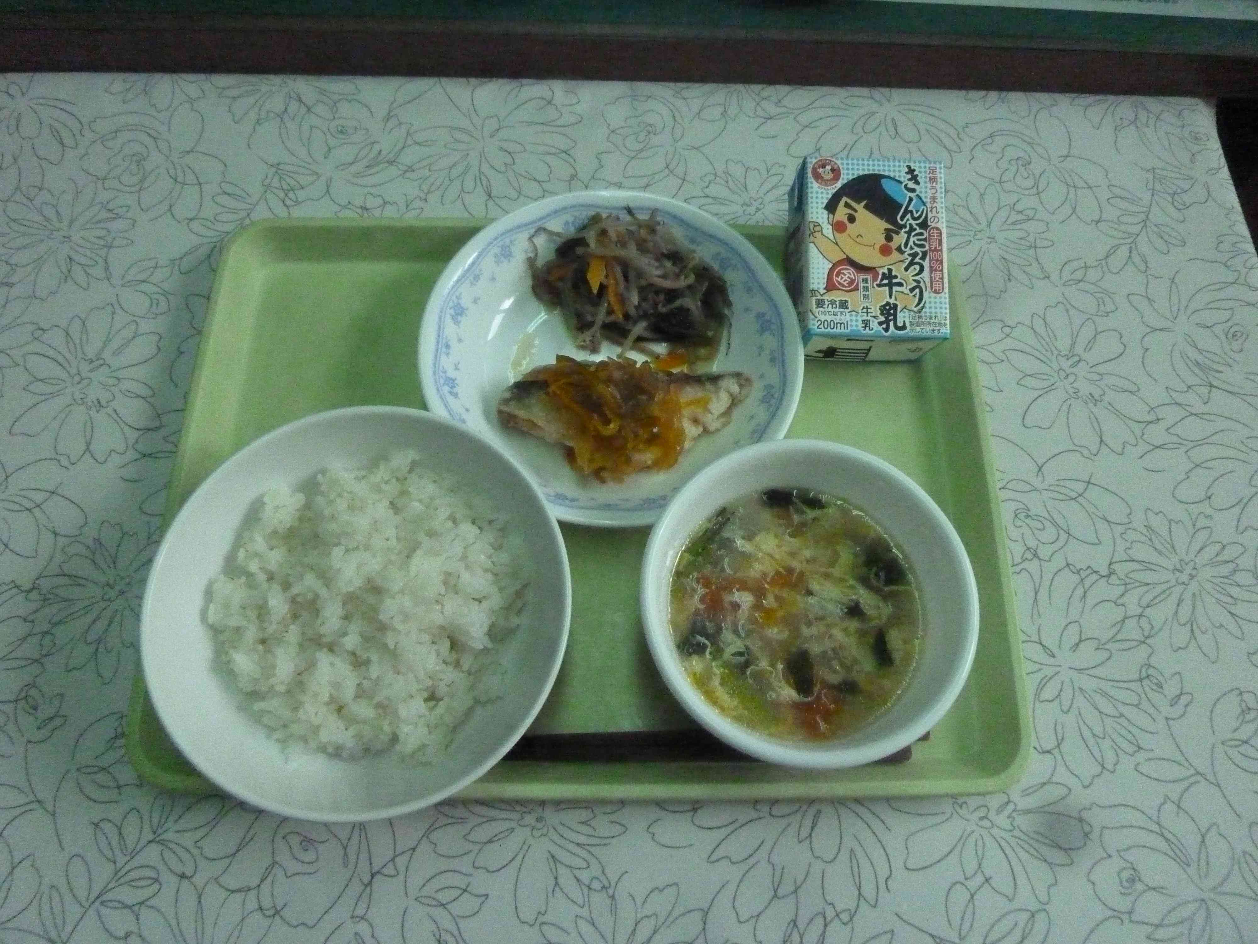 【今日のメニュー】 麦ごはん、トマトと卵のスープ、さばの南蛮漬け、野菜のオイスター炒め、牛乳 【栄養教諭から】 今日のスープはトマト味ではなく、トマトを具として入れました。程よい酸味でさっぱりとして、夏にピッタリのスープです。南蛮漬けには、野菜をたっぷり入れたタレ。タレもおかずとなるように作りました。 暑い日が続きますが、しっかりと食べて、夏に負けない体をつくってほしいです。
